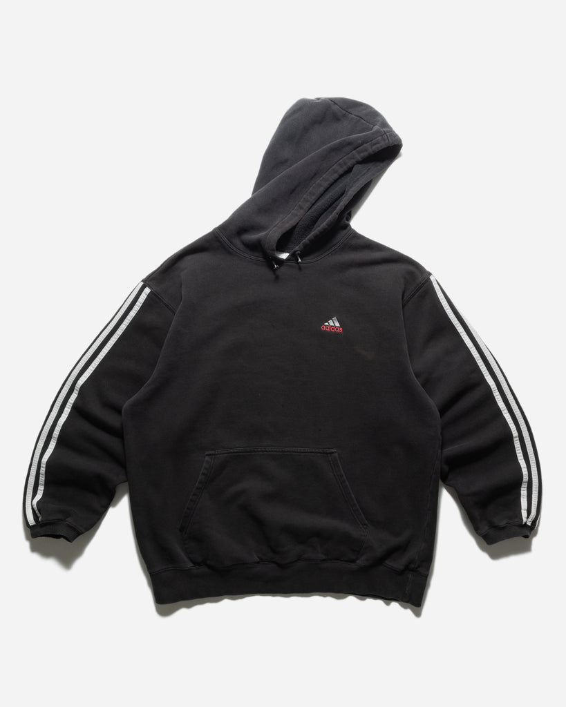 VINTAGE 1990S ADIDAS FADED BLACK HOODED SWEATSHIRT