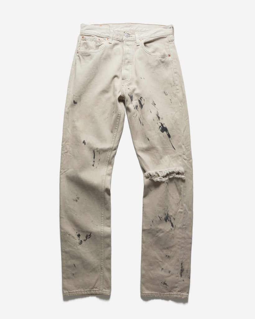 VINTAGE 1990S LEVI'S 501 BEIGE KNEE BLOWOUT PAINTED JEANS