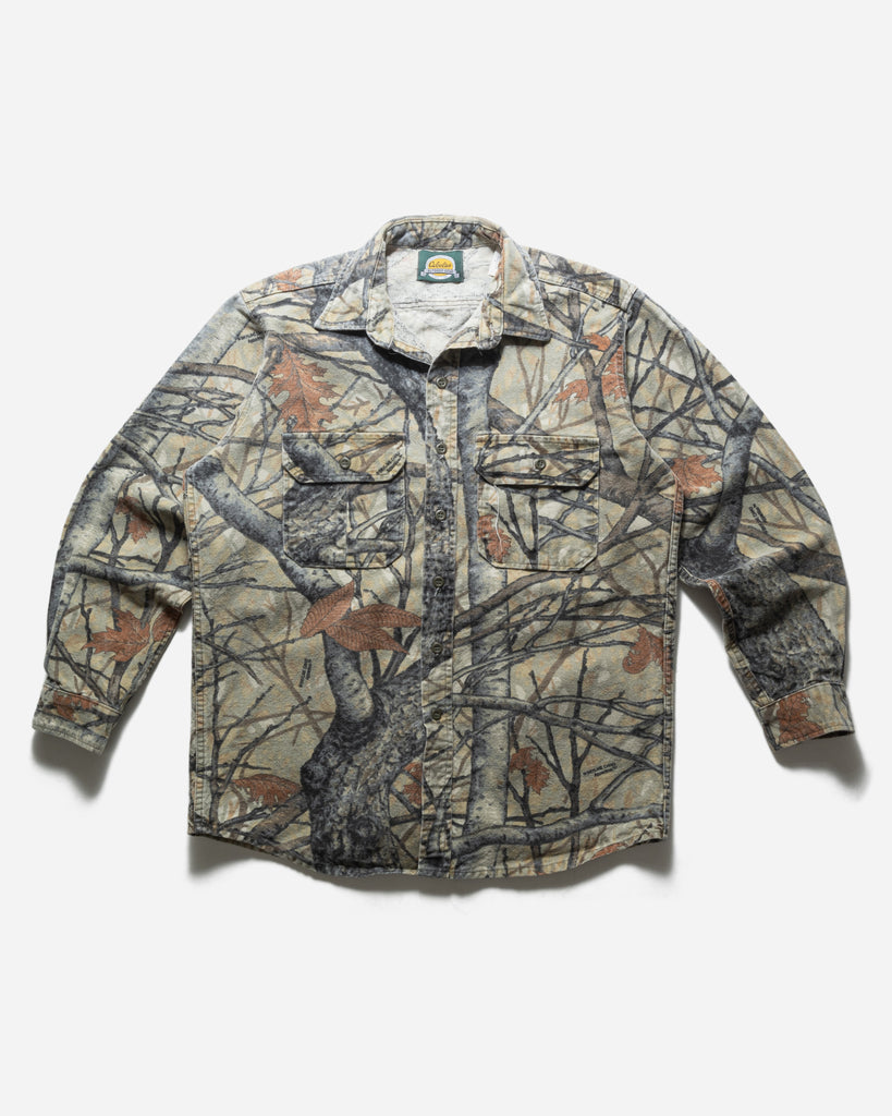 VINTAGE 1990S WOODLAND CAMO BRUSHED COTTON WORK SHIRT