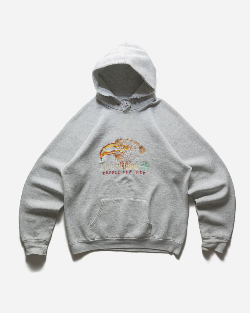 VINTAGE 1990S TIMBERLAND 'RUGGED LEATHER' DISTRESSED RAGLAN SWEATSHIRT