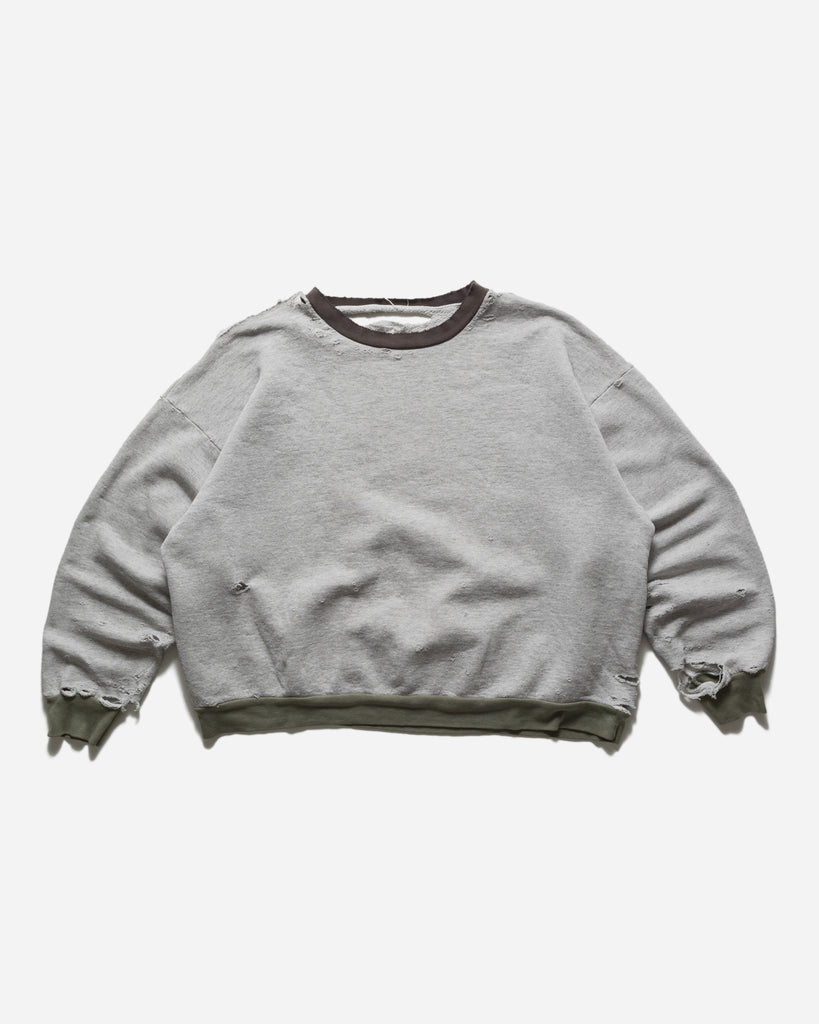 VINTAGE 1990S THRASHED THREE TONE CROPPED CREWNECK SWEATSHIRT