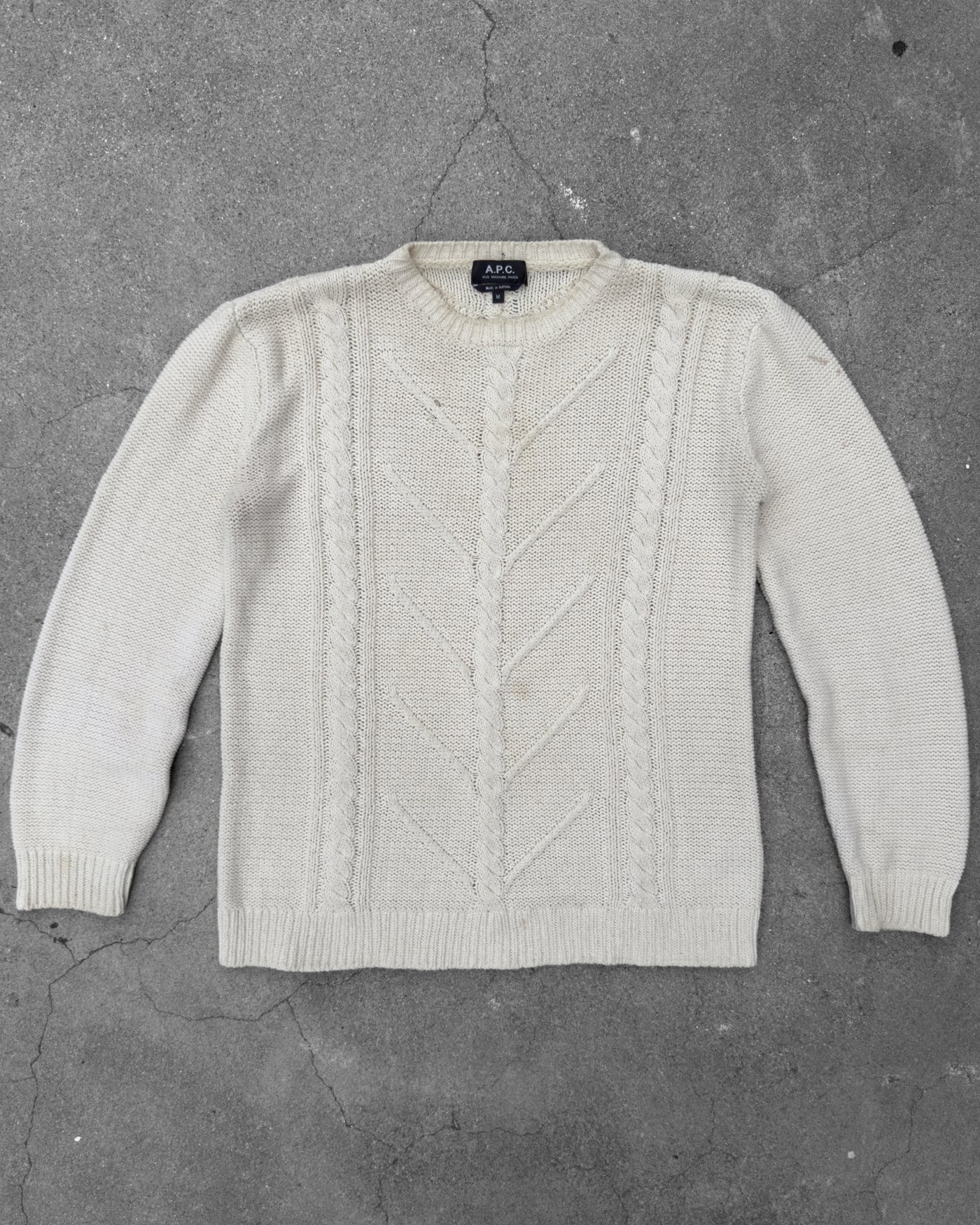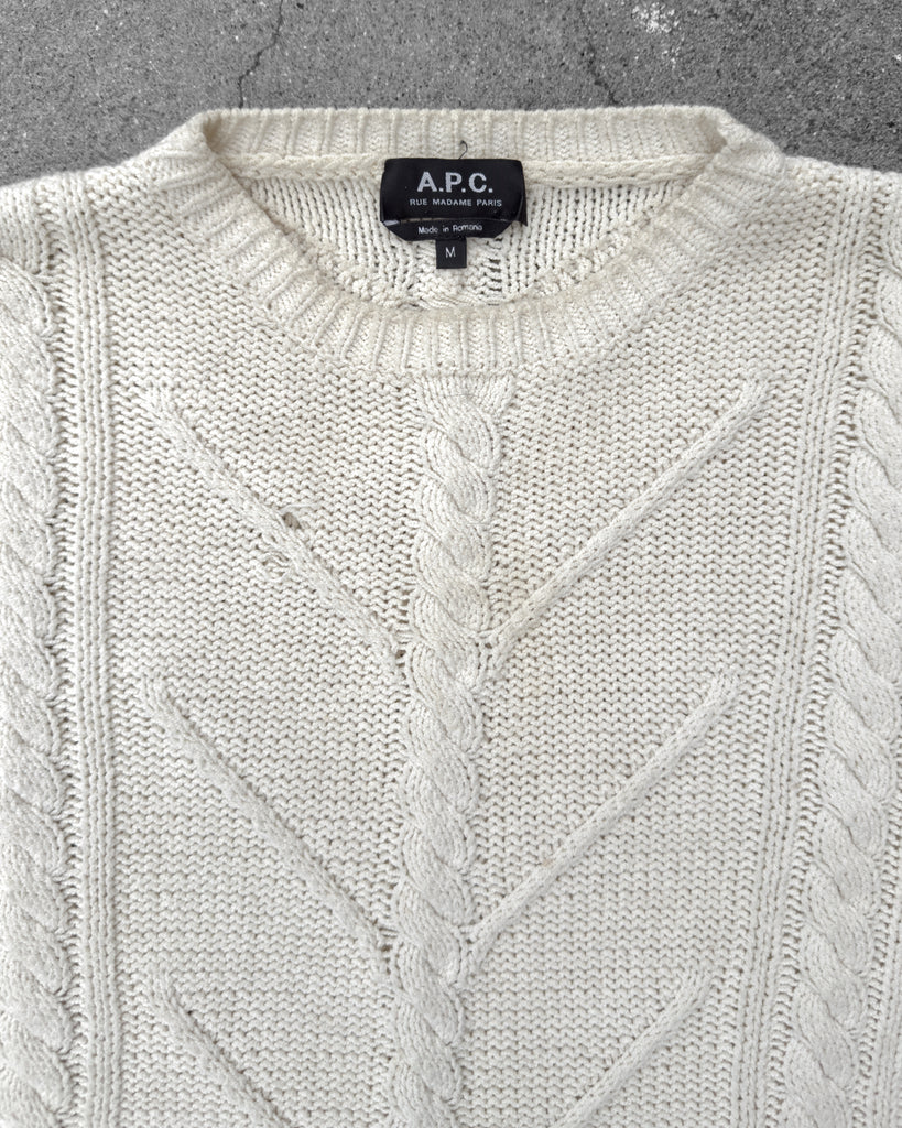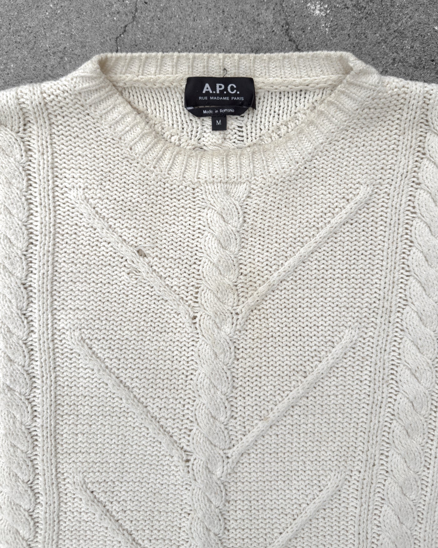 A.P.C. CABLE KNIT IVORY COTTON BLEND SWEATER