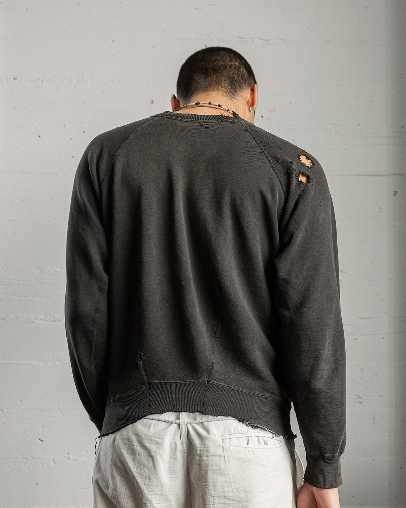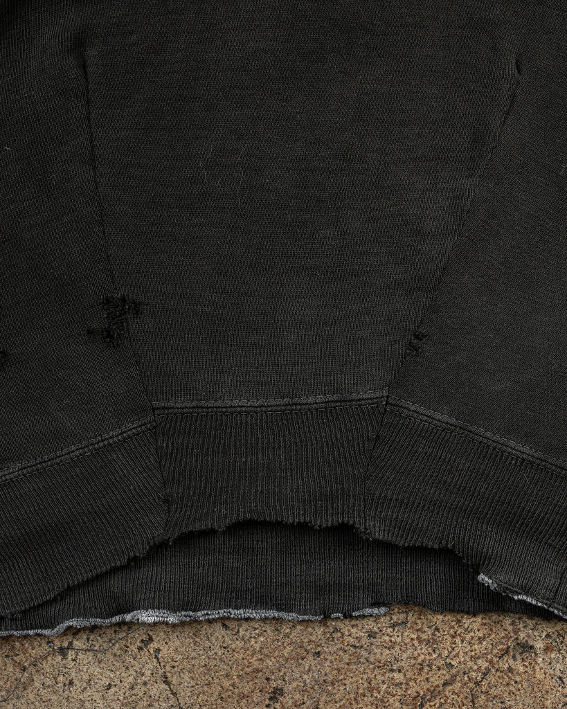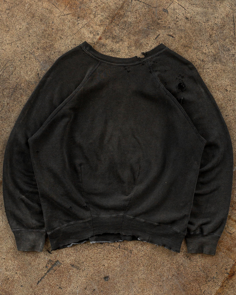 Mayo Spruce Faded Black Blank Distressed Crewneck Sweatshirt - 1960s