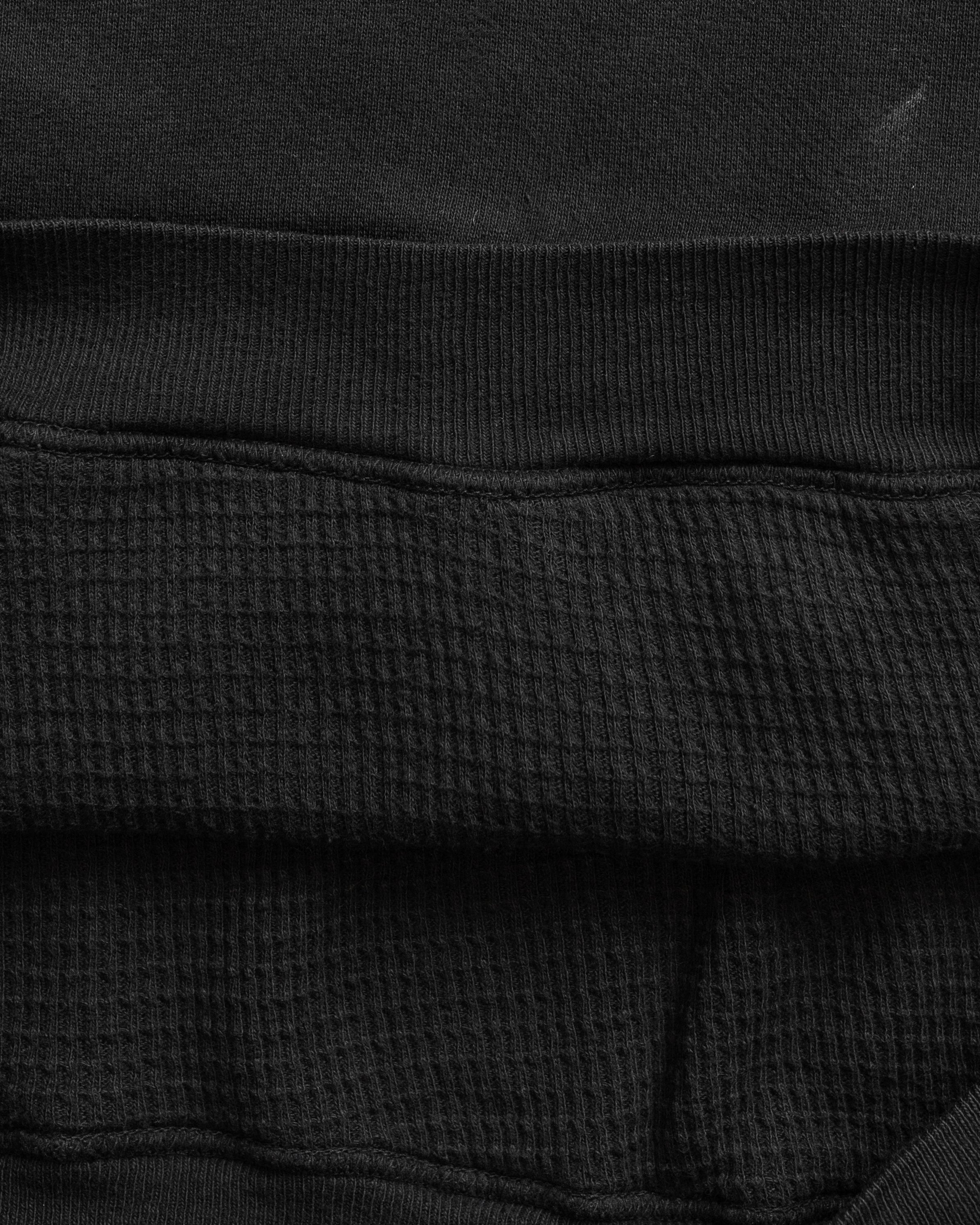 Black Blank Thermal Lined Raglan Hooded Sweatshirt - 1980s