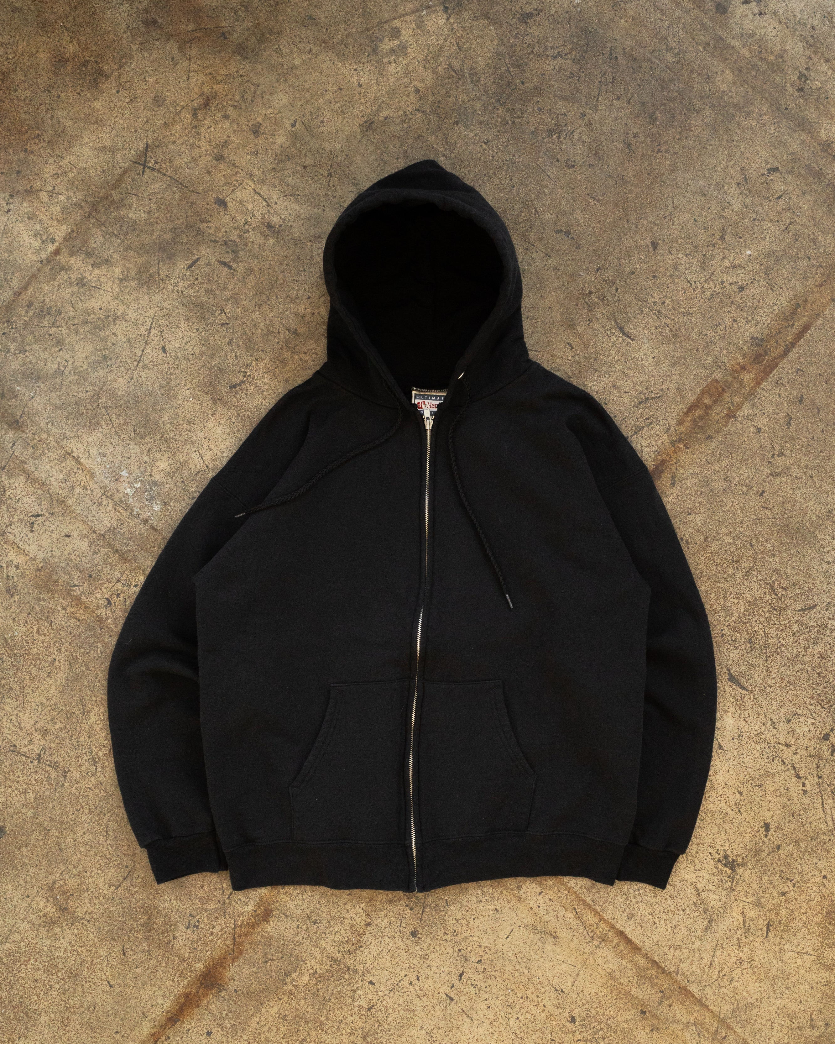 Black Blank Zip-Up Hooded Sweatshirt - 1990s