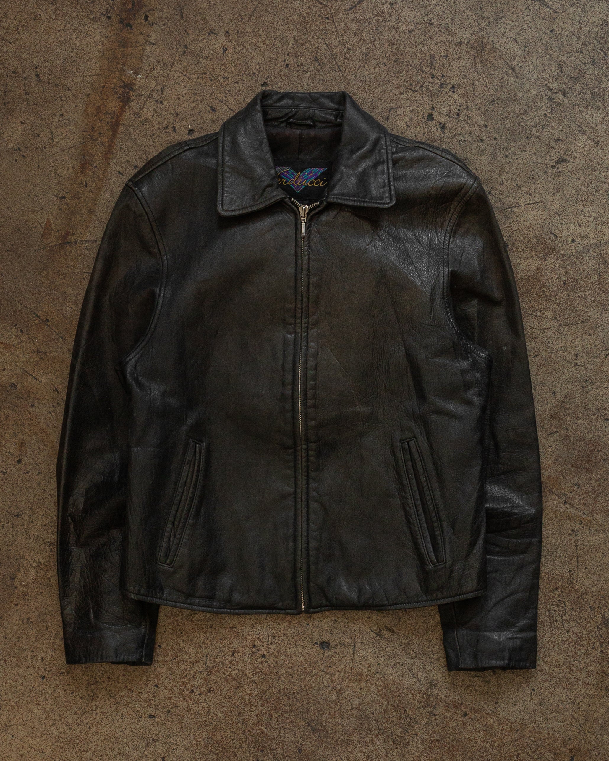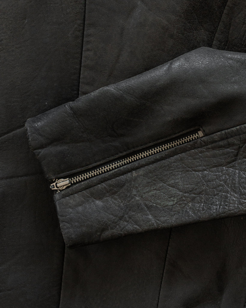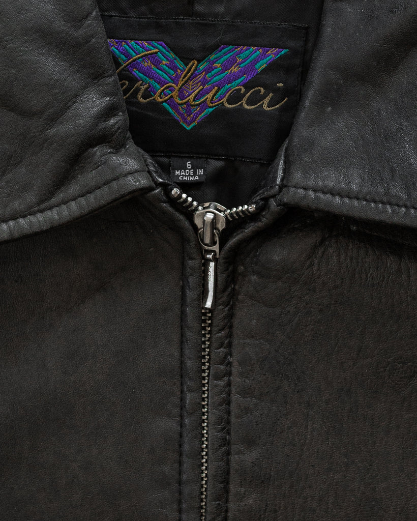 Black Cropped Leather Biker Jacket - 1980s