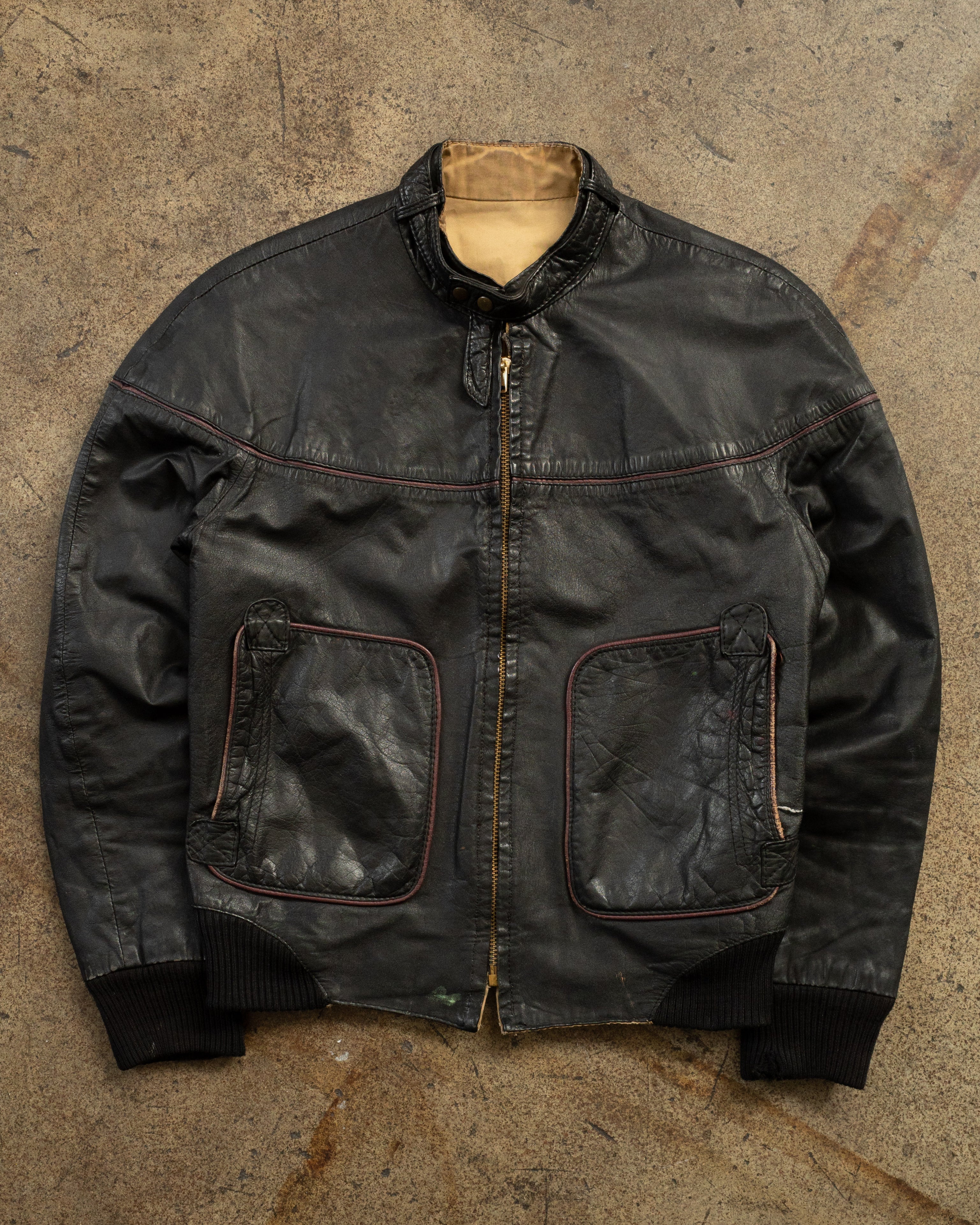 Black Leather Reversible Cafe Racer Jacket - 1960s