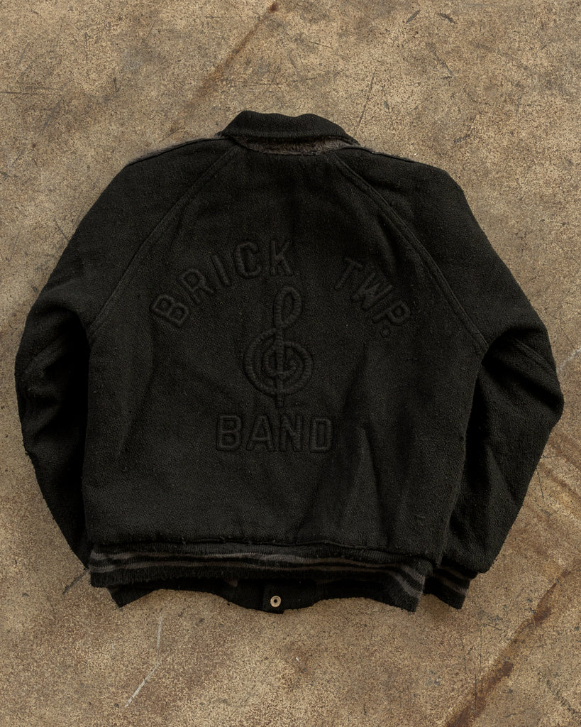 Black Overdyed "Brick TWP." Wool Varsity Jacket - 1970s