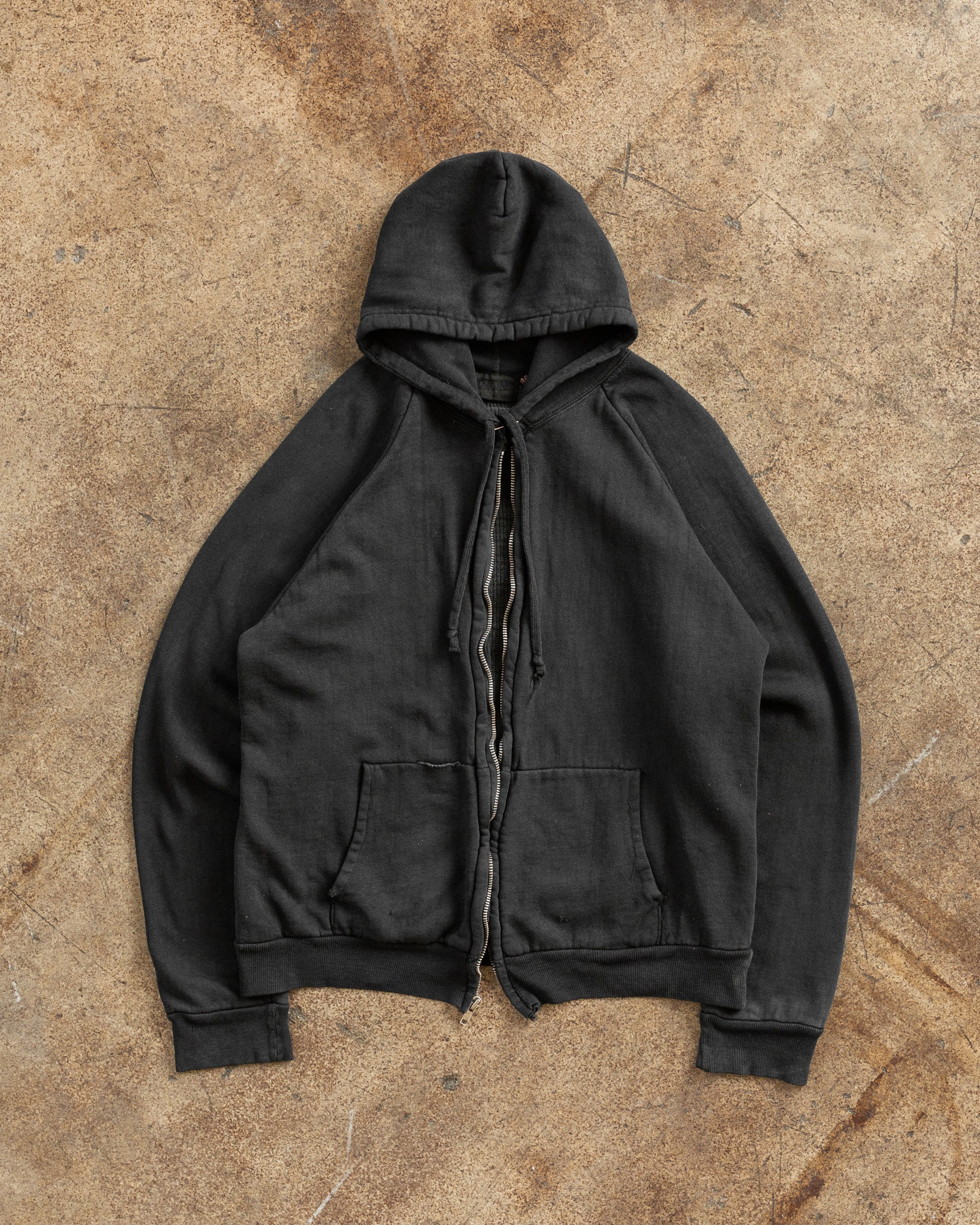 Black Thermal Lined Blank Zip-Up Hooded Sweatshirt - 1980s
