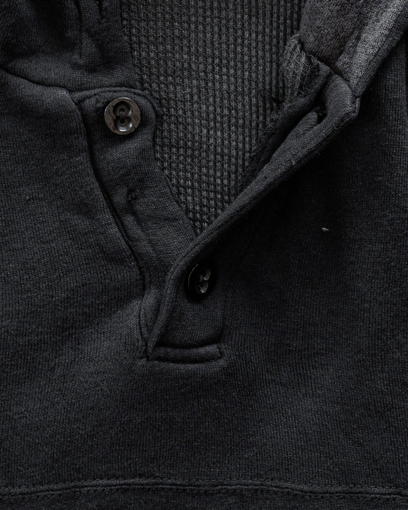 Black Thermal Lined Henley Hooded Sweatshirt - 1990s