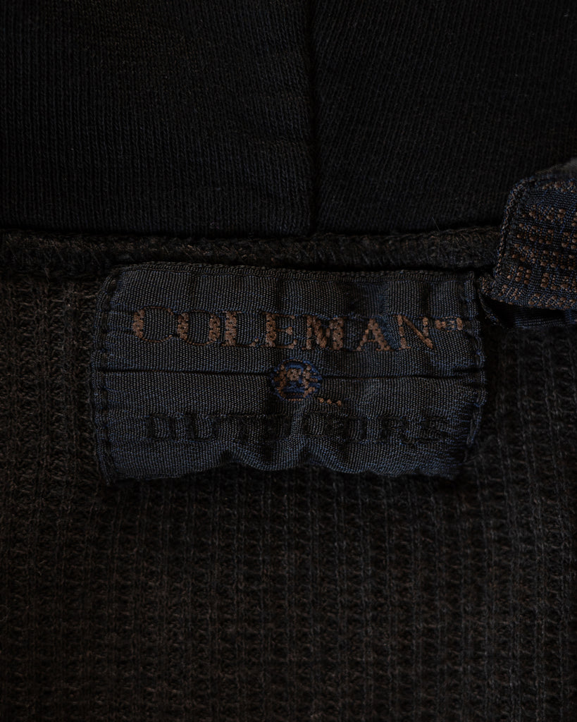 Overdyed Black Thermal Lined Zip-Up Hooded Sweatshirt - 1980s