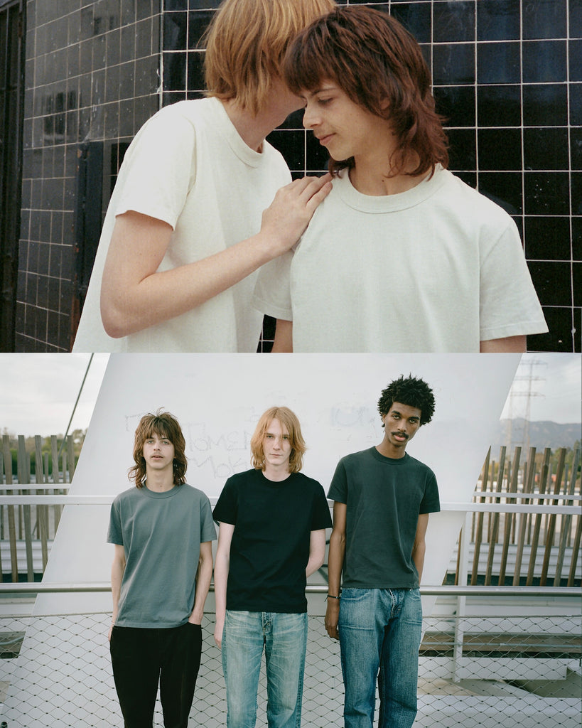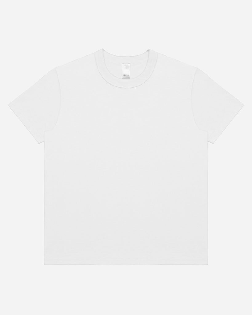 Our 6.5oz cotton jersey blank tee shirt features a classic fit body, mid-bicep length sleeves, a bound rib knit collar, and a baby cover stitch. Intended to age beautifully throughout time. Made in Compton, CA.