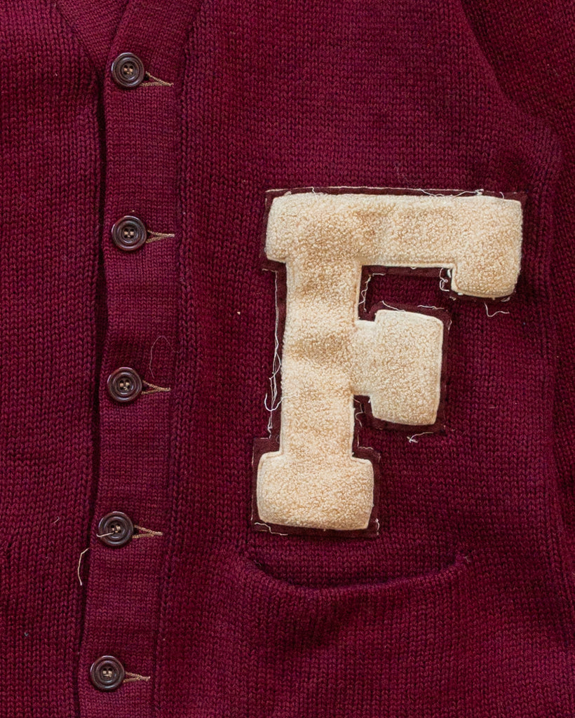 Burgundy Letterman Cardigan Knitted Sweater - 1950s