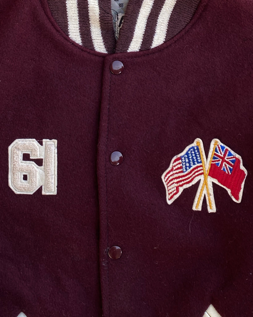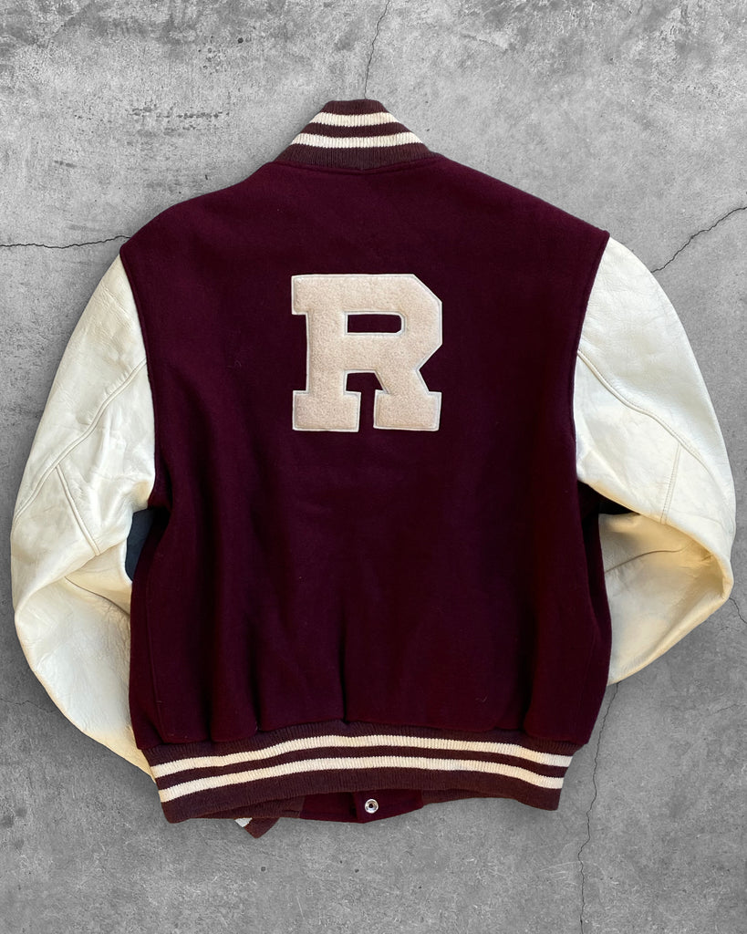 Burgundy "R" Leather Sleeve Varsity Jacket - 1960s