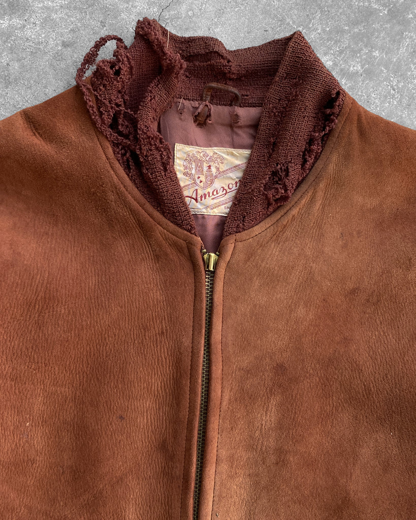 Burnt Orange Suede Bomber Jacket - 1970s