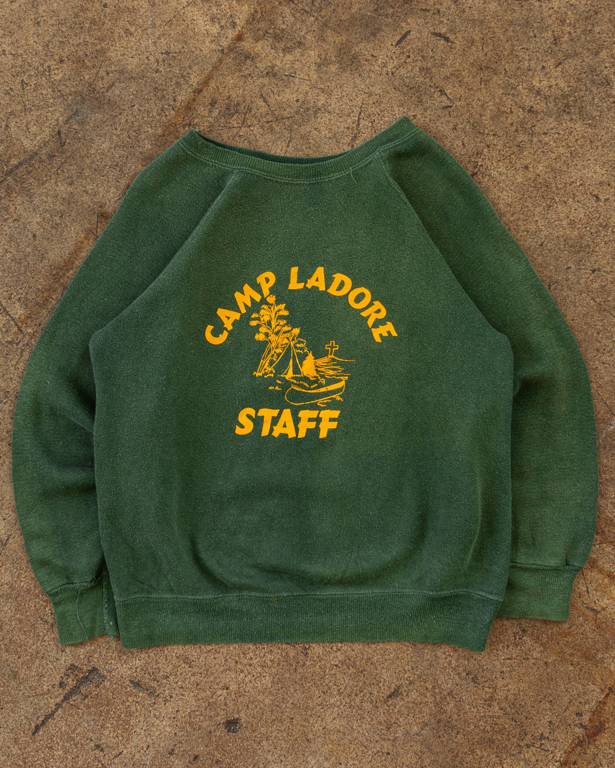"Camp Ladore Staff" Forest Green Raglan Sweatshirt - 1980s