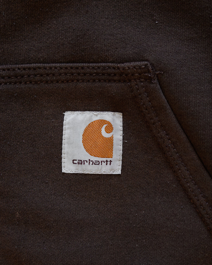 Carhartt Faded Brown Zip-Up Hooded Sweatshirt - 1990's
