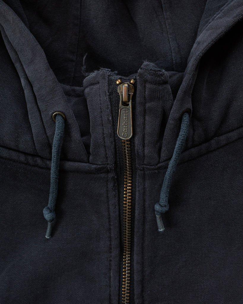 Carhartt Faded Navy Quarter-Zip Distressed Hooded Sweatshirt