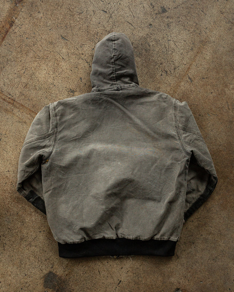 Carhartt Faded & Repaired Charcoal Hooded Work Jacket - 1990s