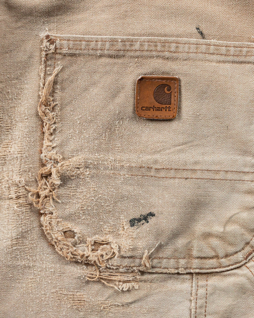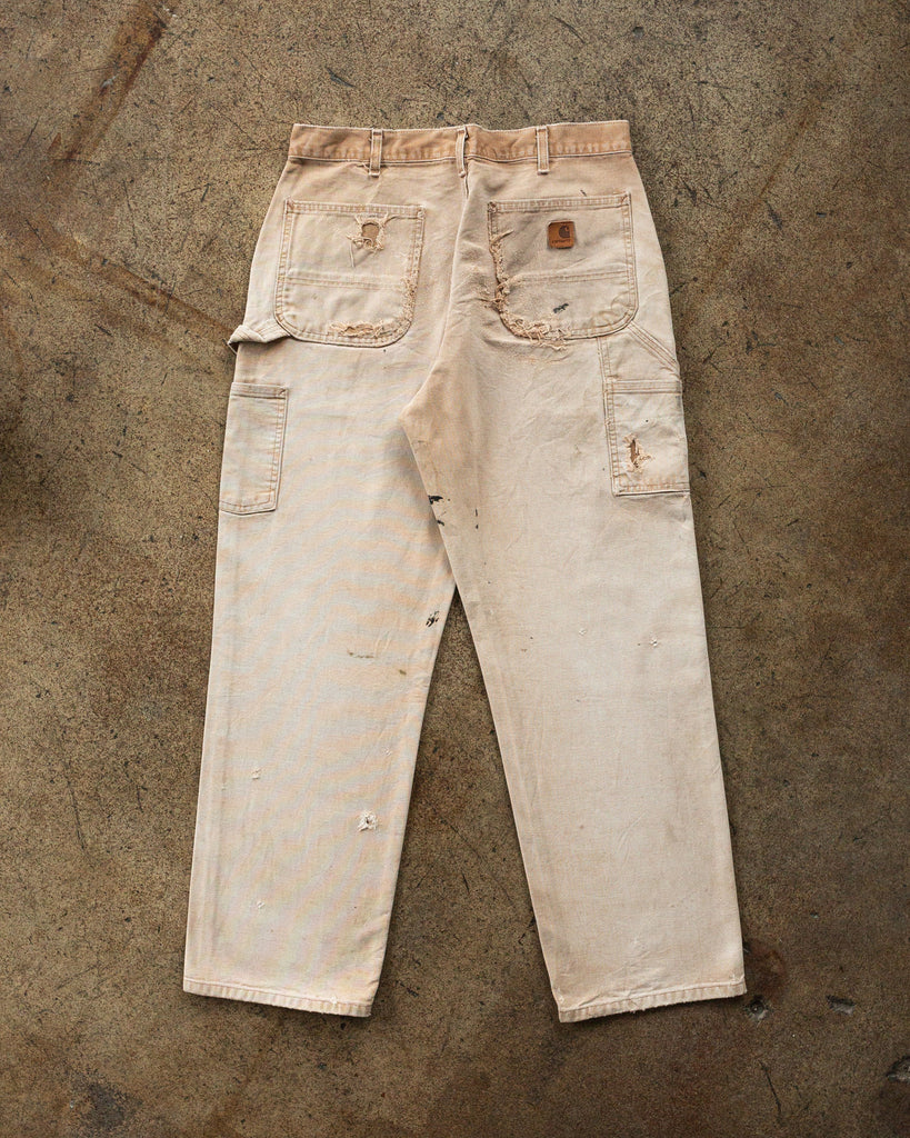 Carhartt Faded Tan Single Knee Distressed & Painted Work Pants - 1990s