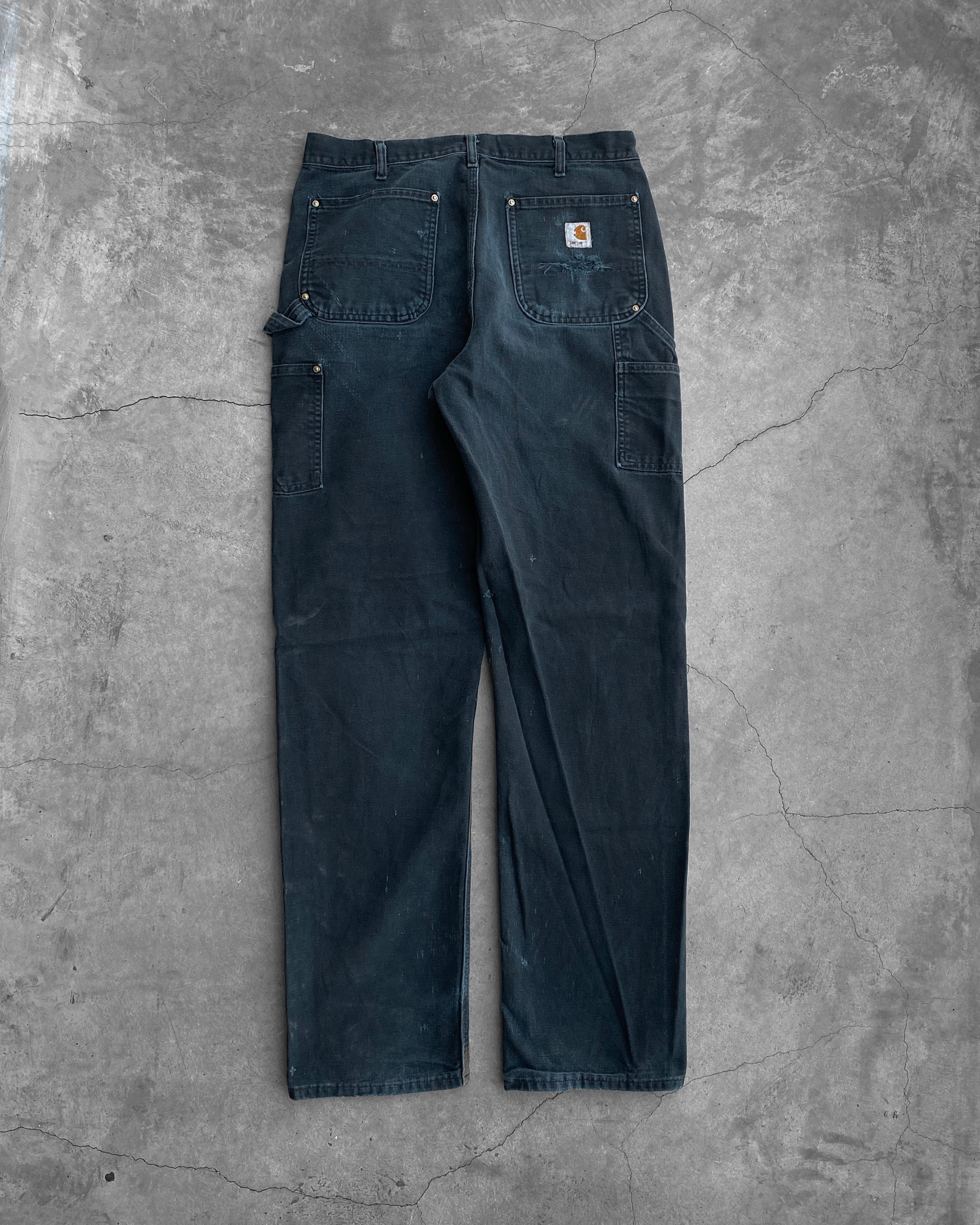 Carhartt Made In U.S.A Faded Black Double Knee Work Pants - 1990s