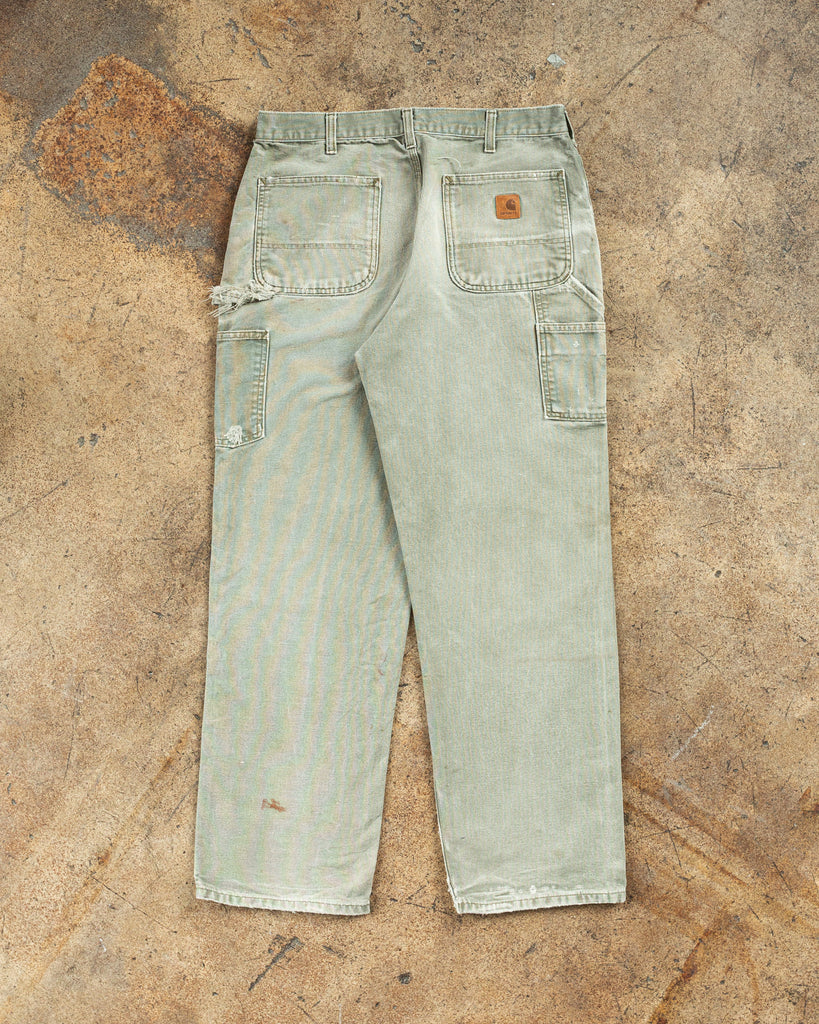 Carhartt Sage Green Repaired Single Knee Work Pants - 1990s