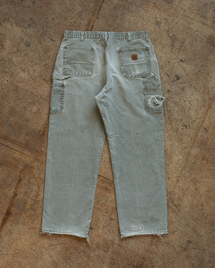 Carhartt Sage Green Single Knee Repaired Work Pants - 1990s