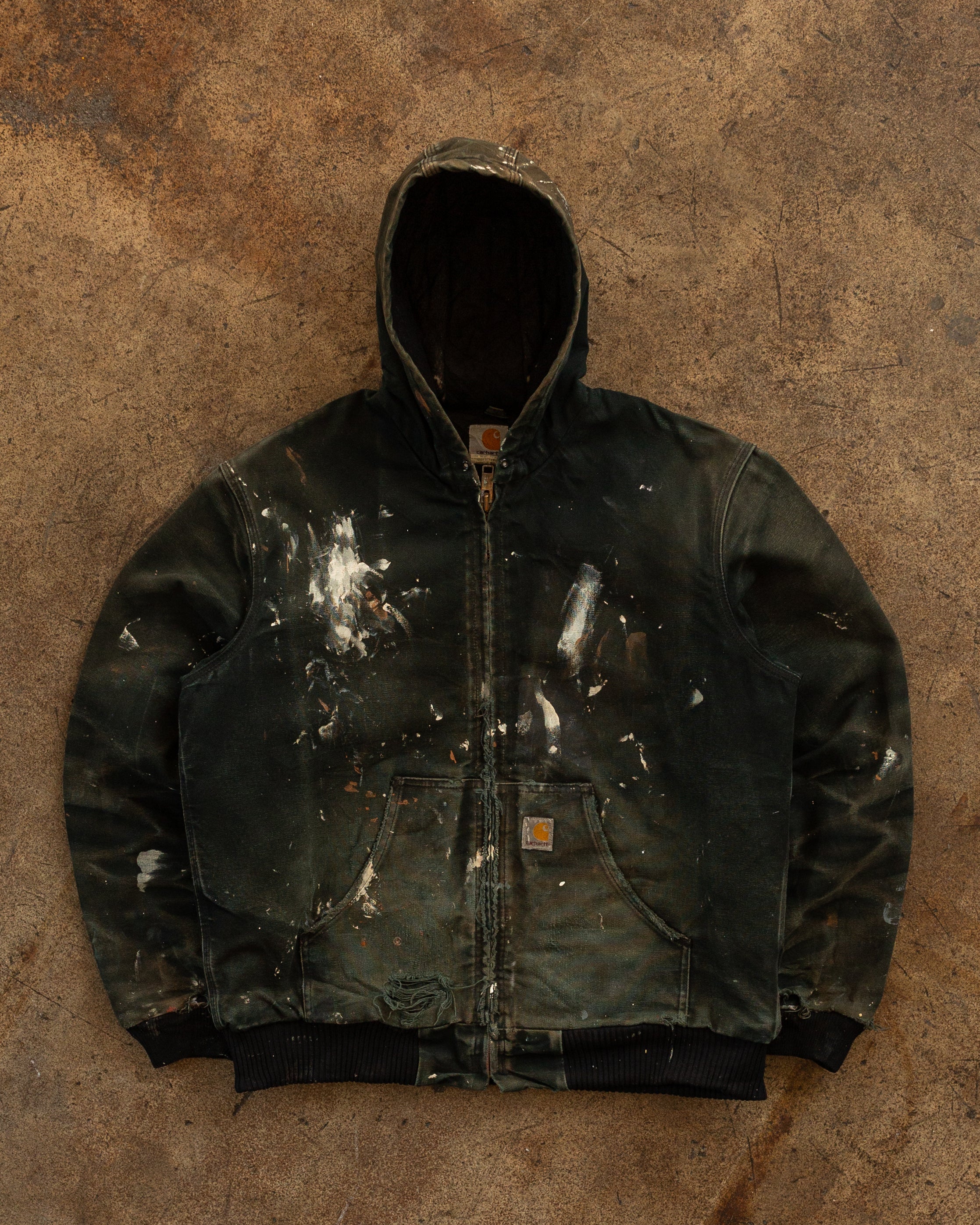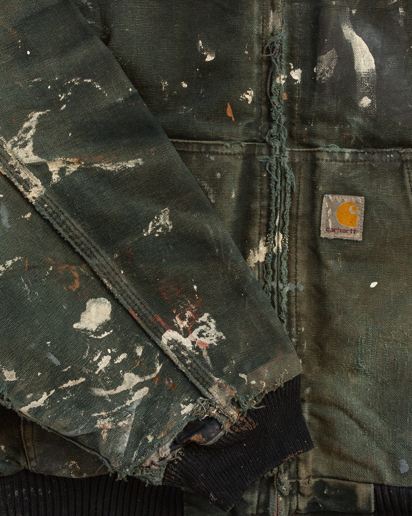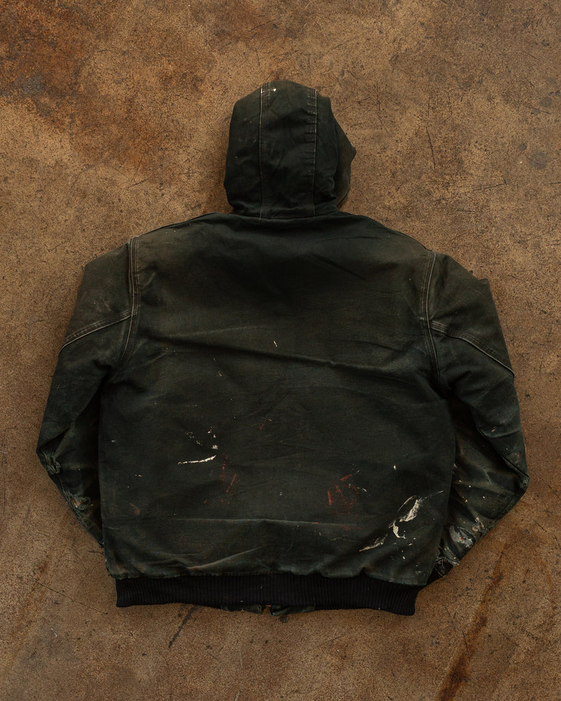 Carhartt Sun Faded Navy Painted & Distressed Hooded Work Jacket - 1990s