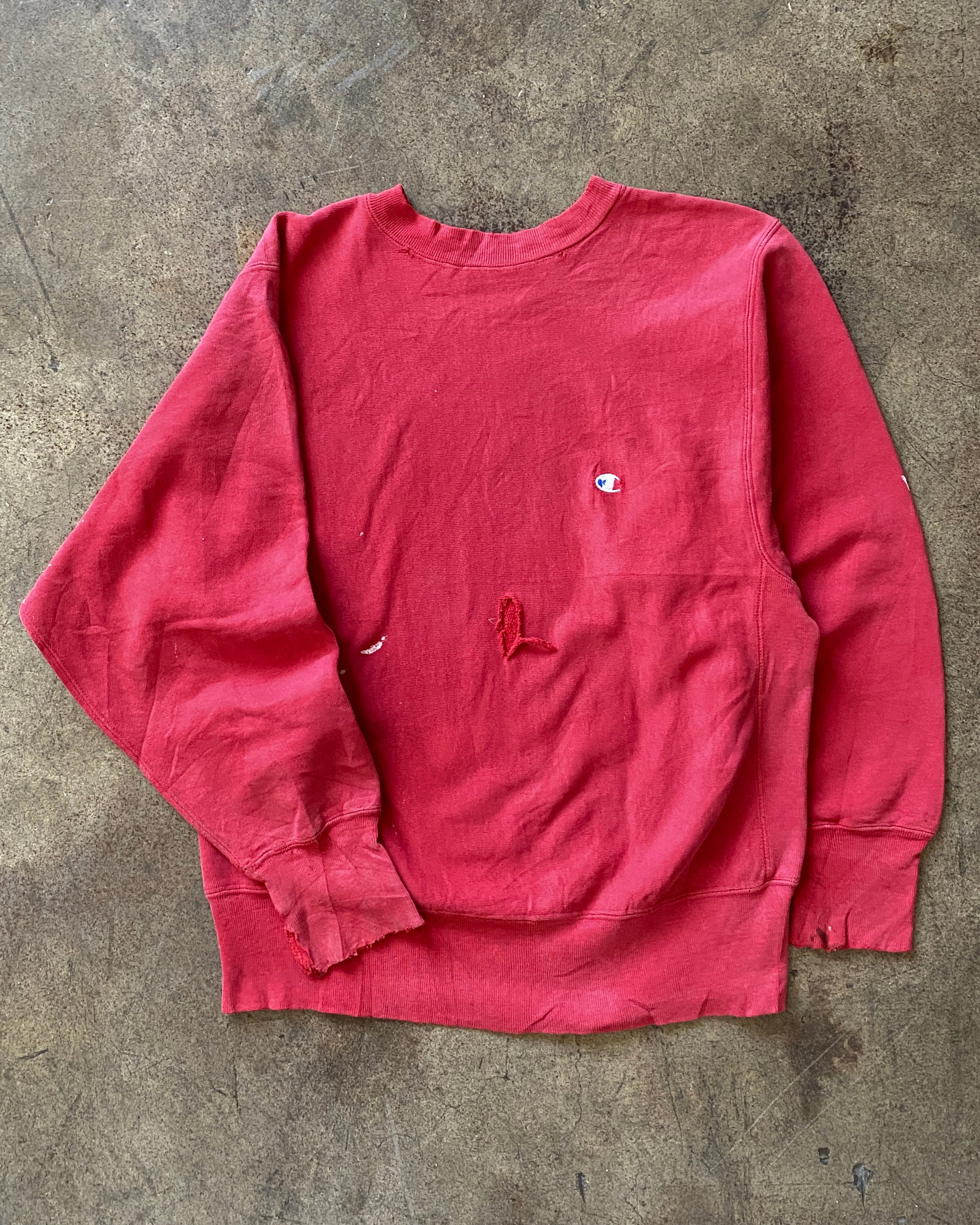 Champion Scarlett Red Distressed Blank Crewneck Sweatshirt - 1980s