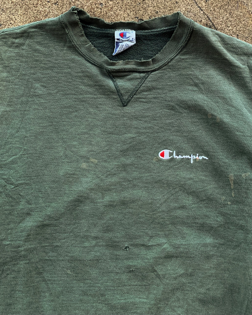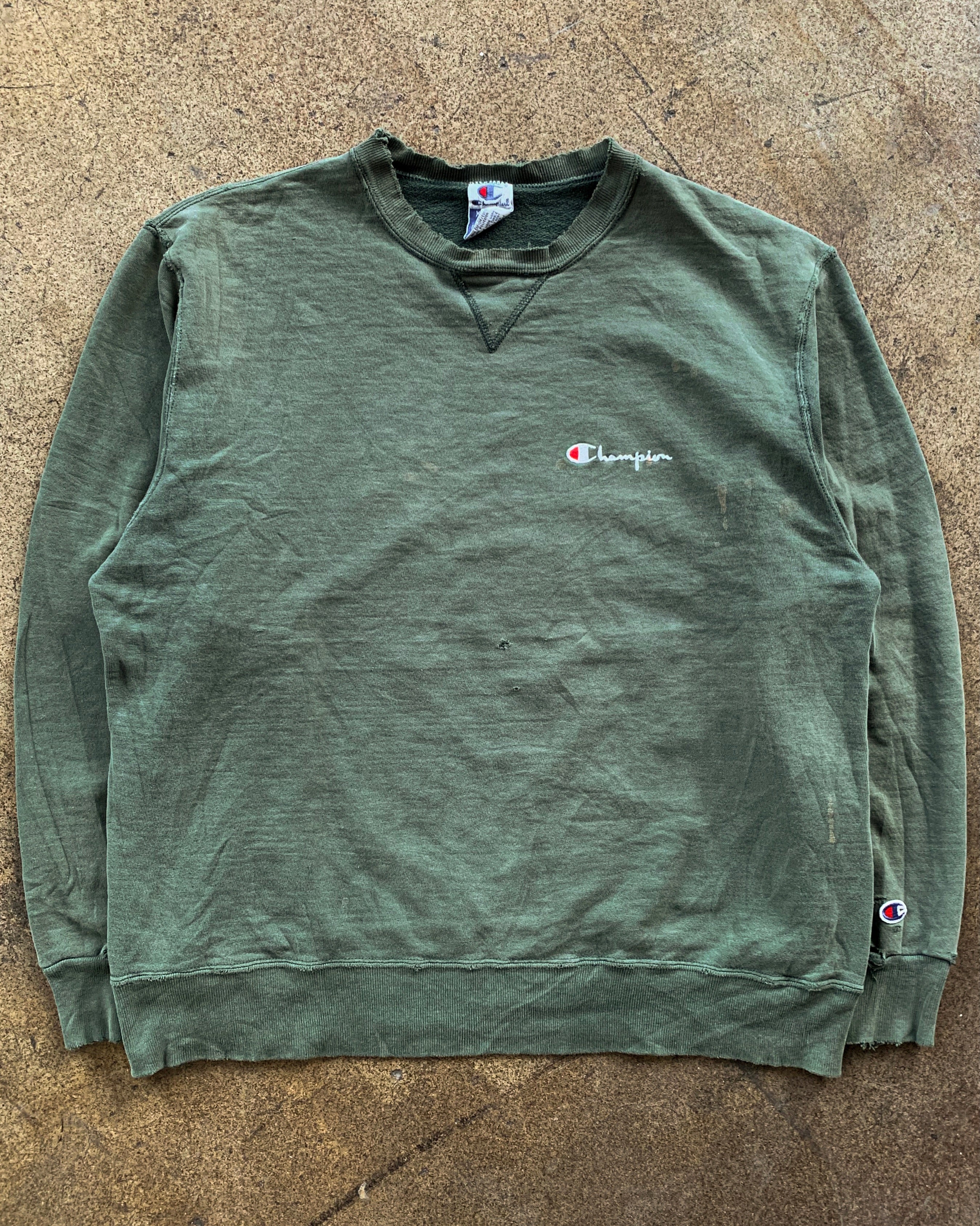 Champion Sun Faded Forest Green Blank Crewneck Sweatshirt - 1990s