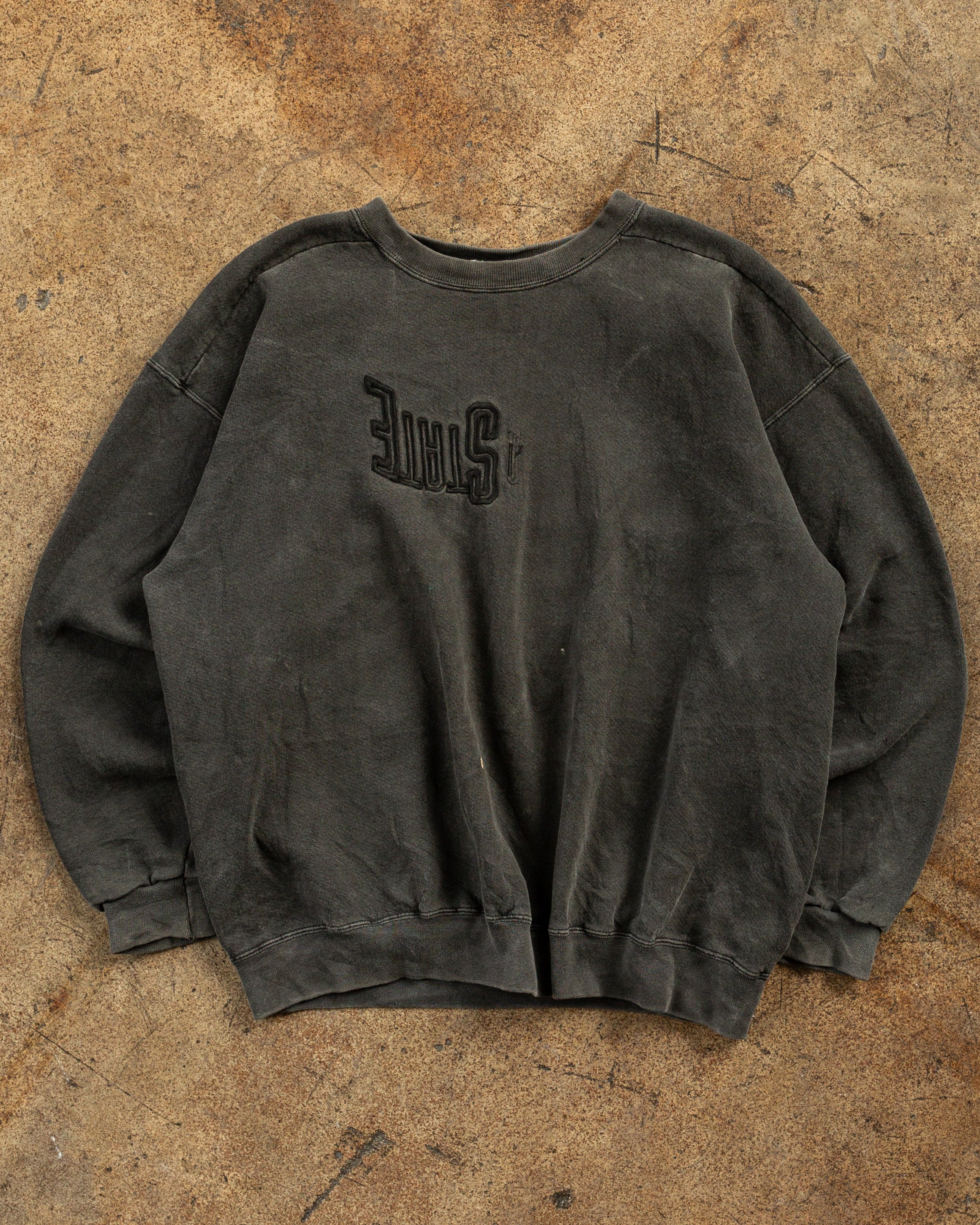 Charcoal "State" Upside-down Embroidered Crewneck Sweatshirt - 1990s