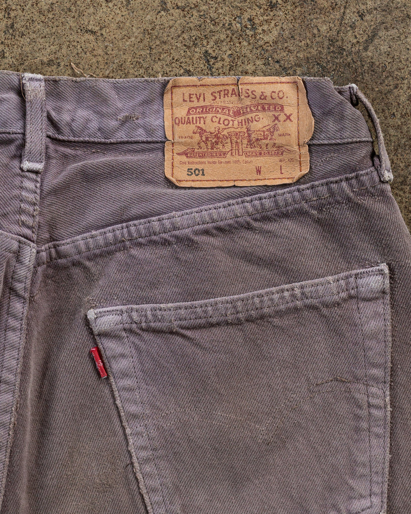 Levi's 501 Sun Faded Purple Brown Repaired Jeans - 1990s