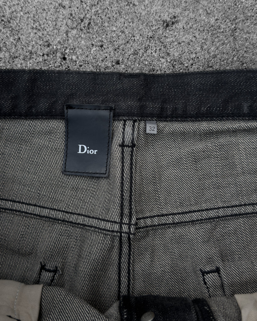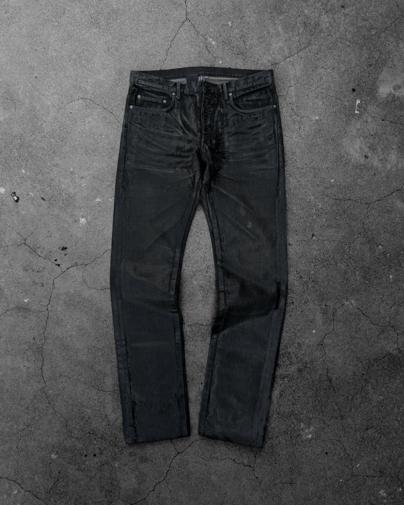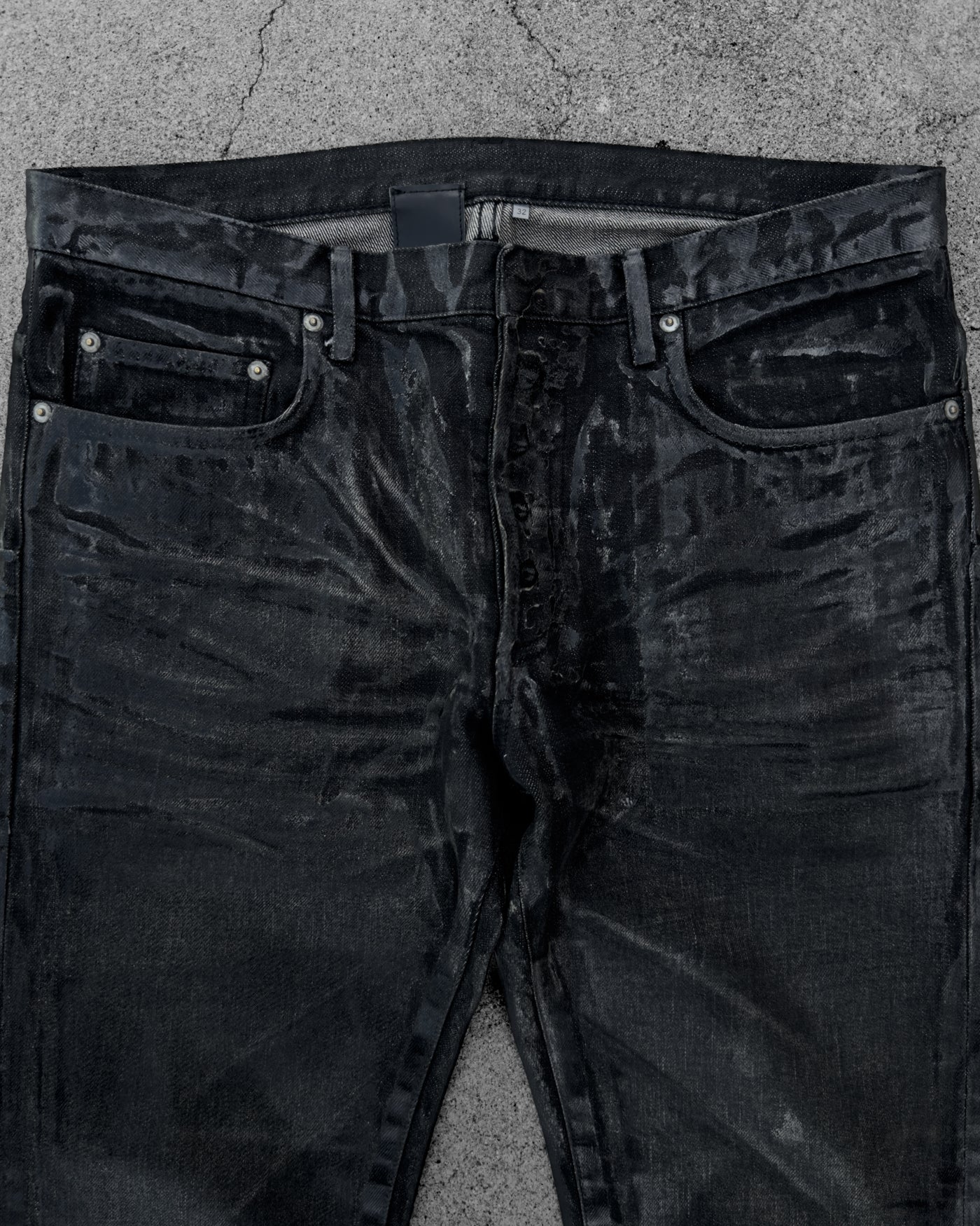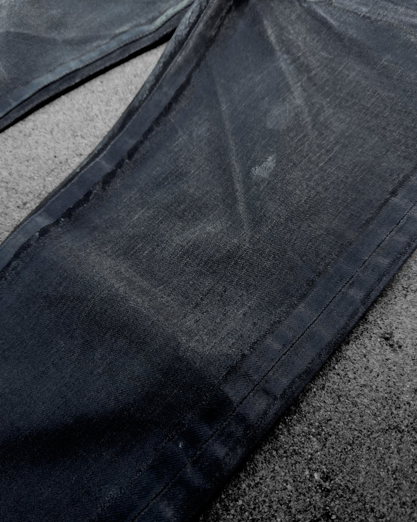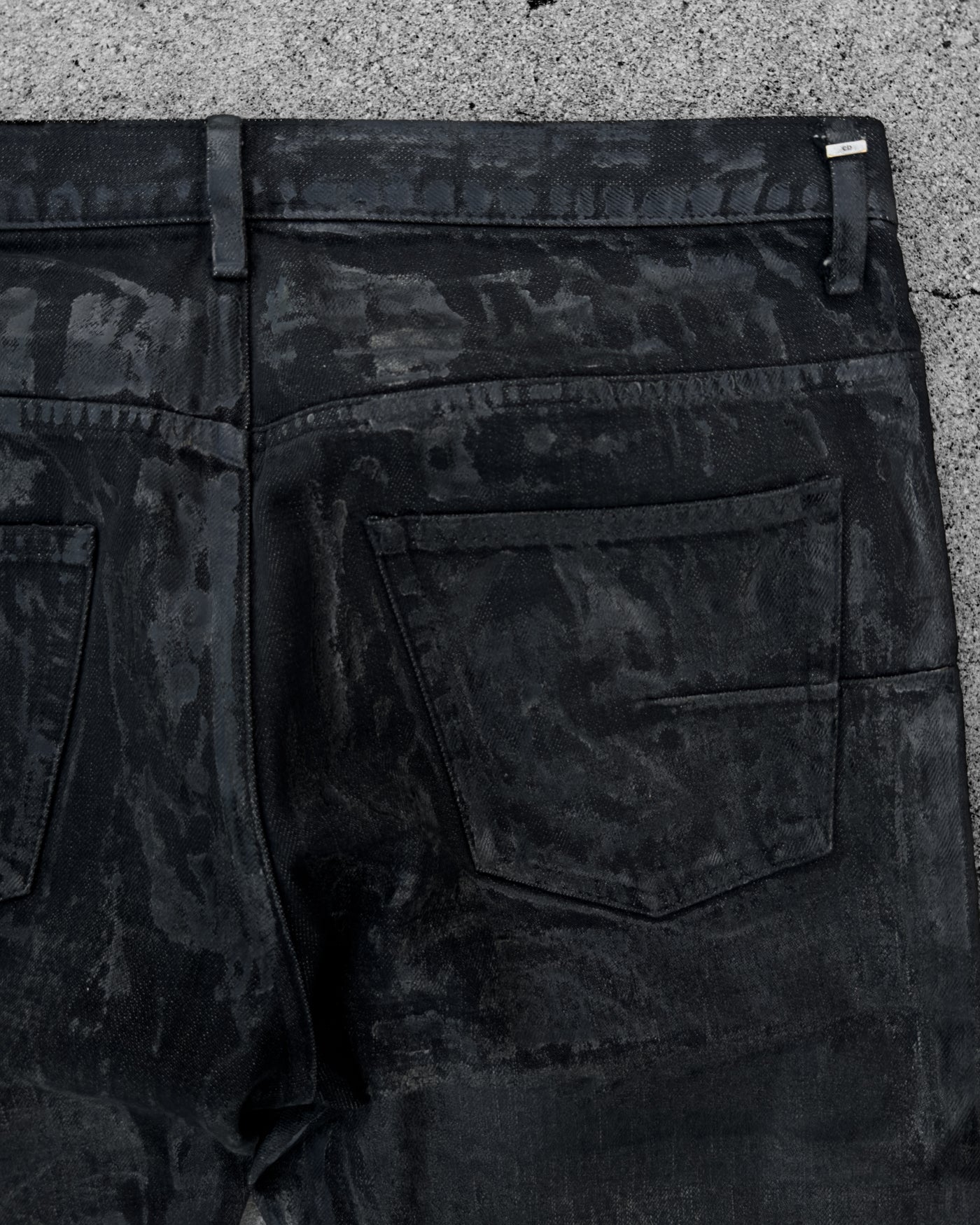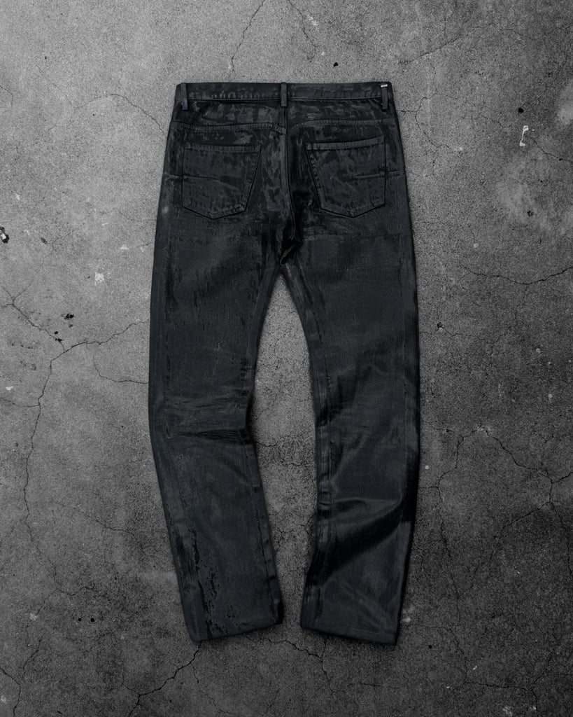 DIOR HOMME AW2003 'LUSTER' BLACK WAXED CLAW MARK SKINNY JEANS