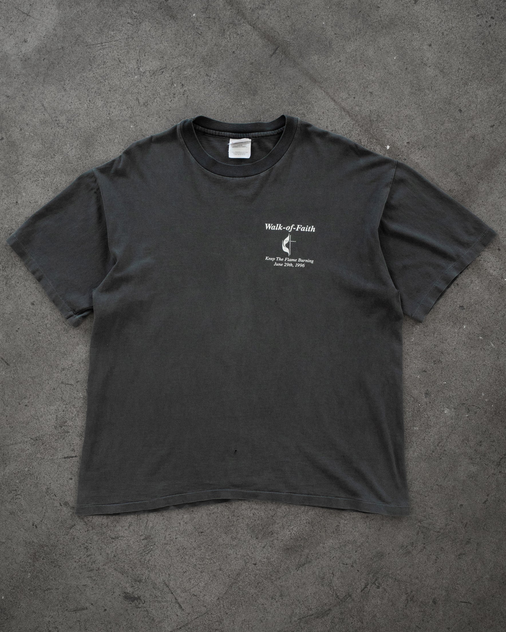 Faded Charcoal "Keep The Flame Burning" Distressed Tee - 1990s