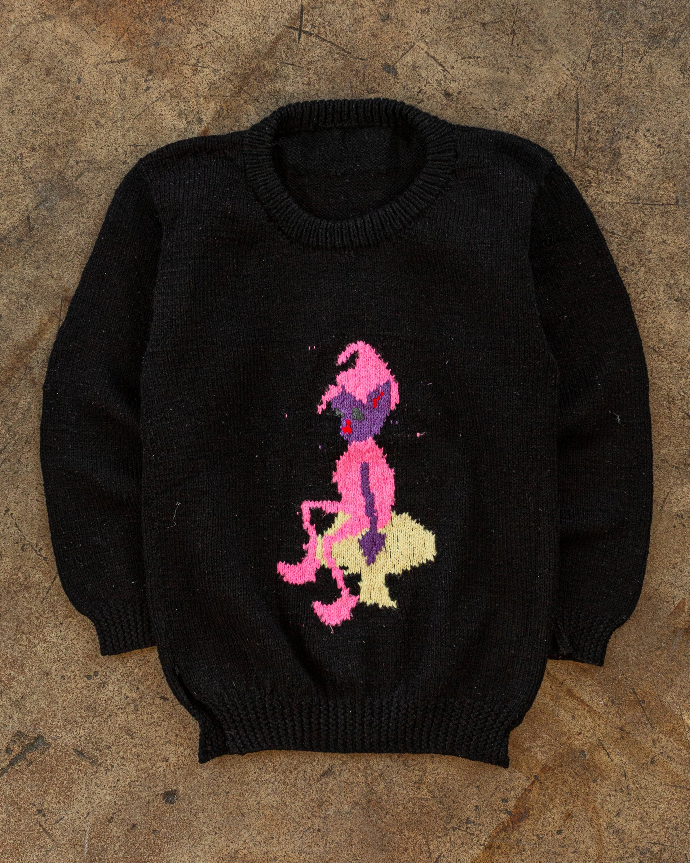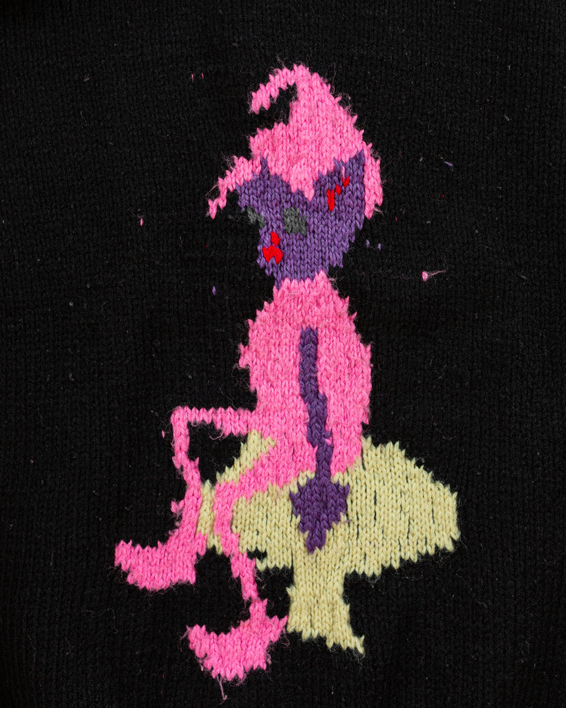 Black Knitted Elf Sitting on a Mushroom Sweater - 1970s