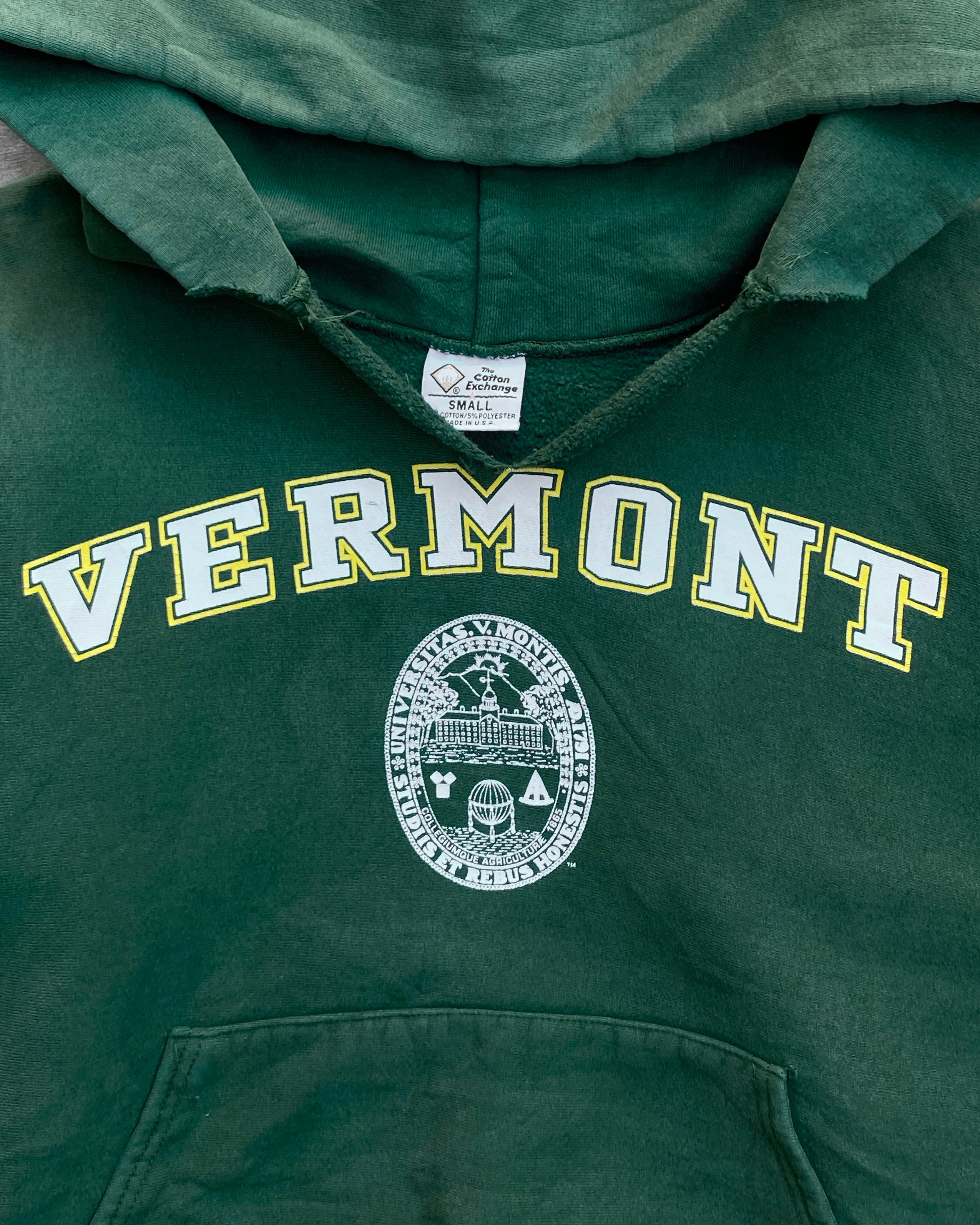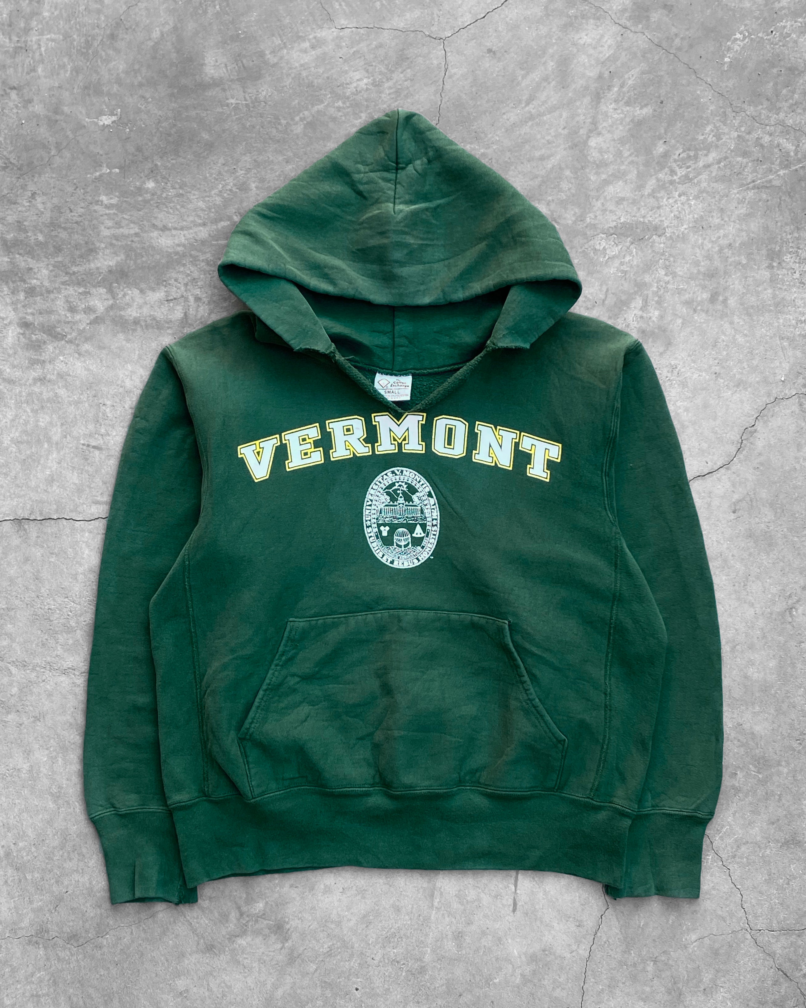 Forest Green Faded "Vermont University" Hooded Sweatshirt - 1990s