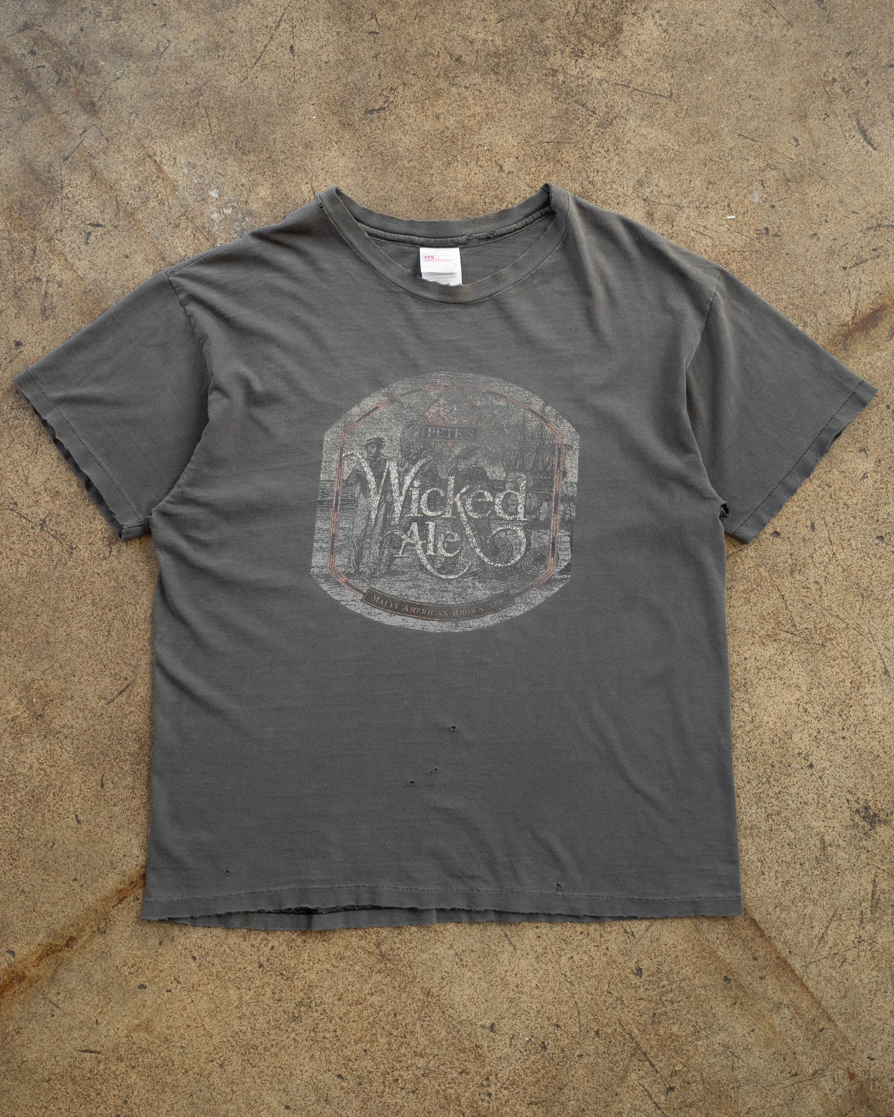 Hanes Beefy "Wicked Ale" Distressed Faded Tee - 1990s