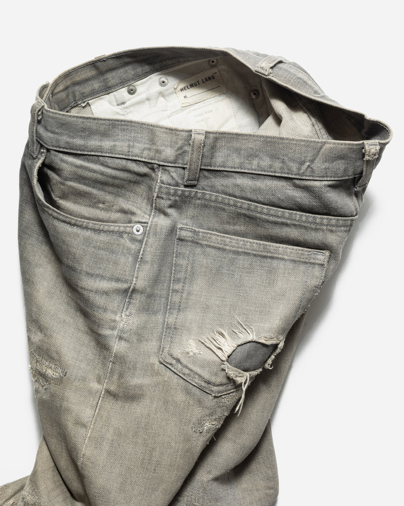 HELMUT LANG 1990S ITALIAN CUT GREY REPAIRED CRASH DENIM - 29 is backordered and will ship as soon as it is back in stock.