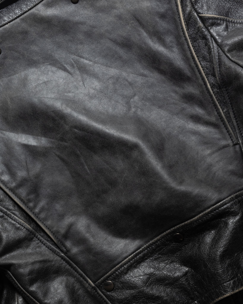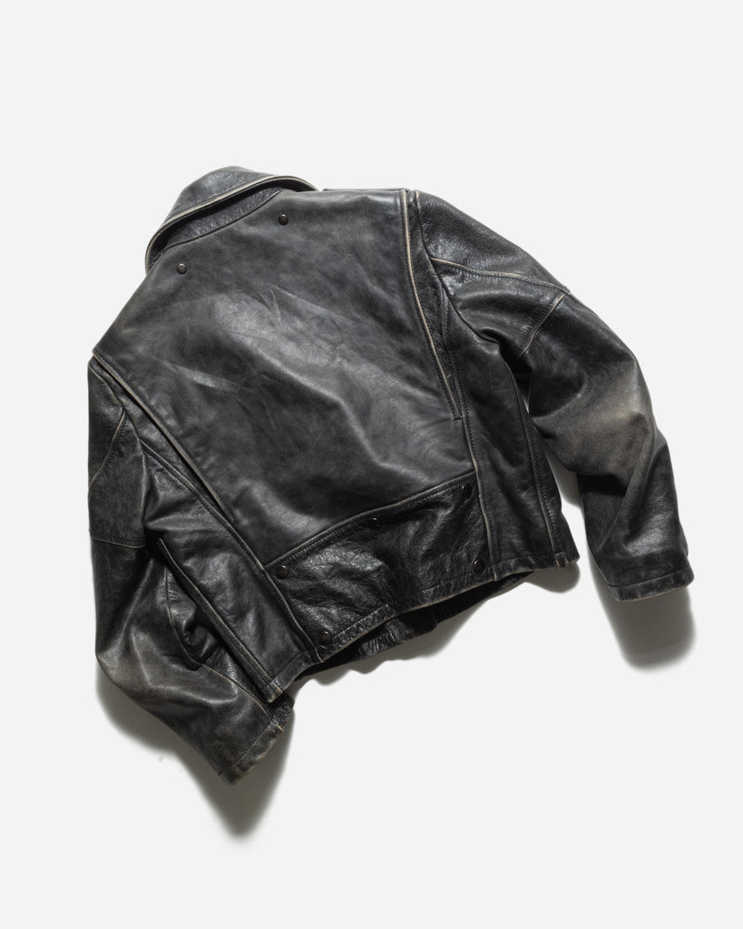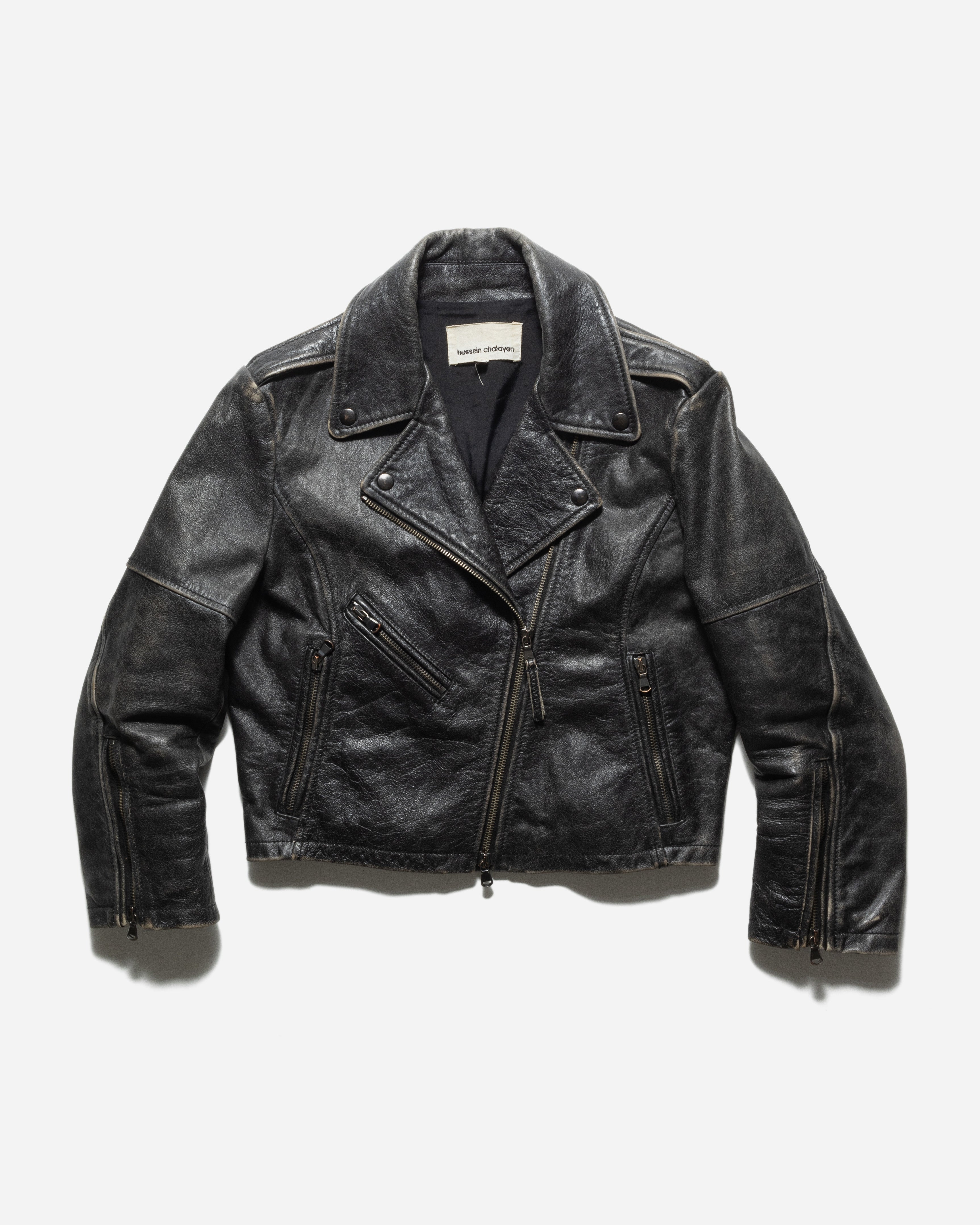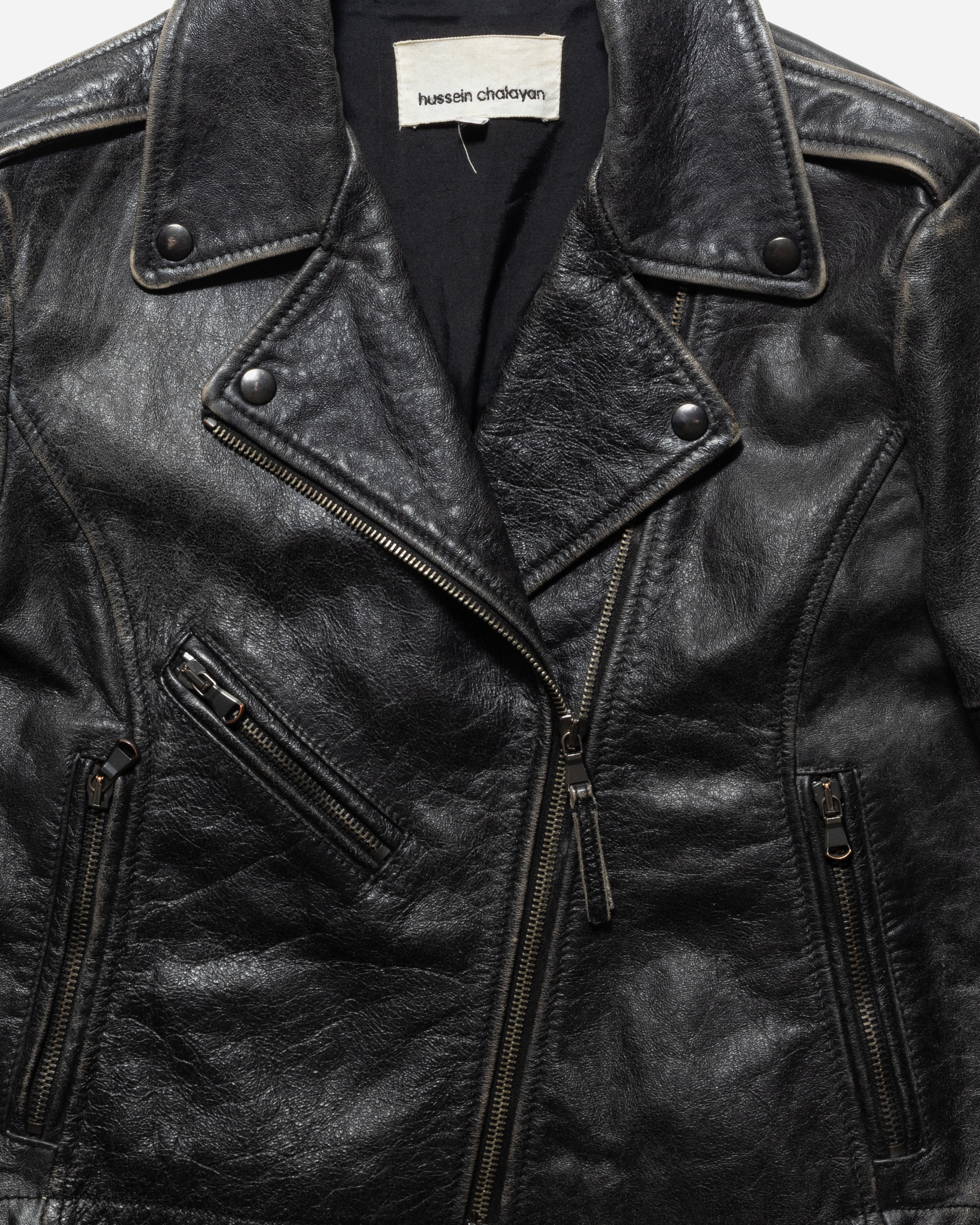 HUSSEIN CHALAYAN EARLY 2000S DISTRESSED LEATHER MICRO BIKER JACKET