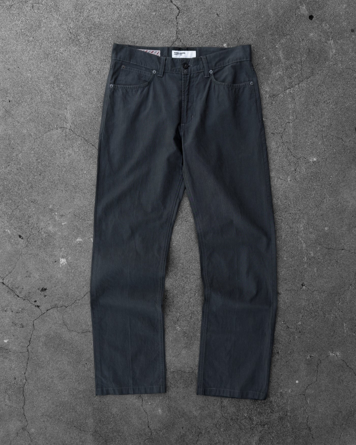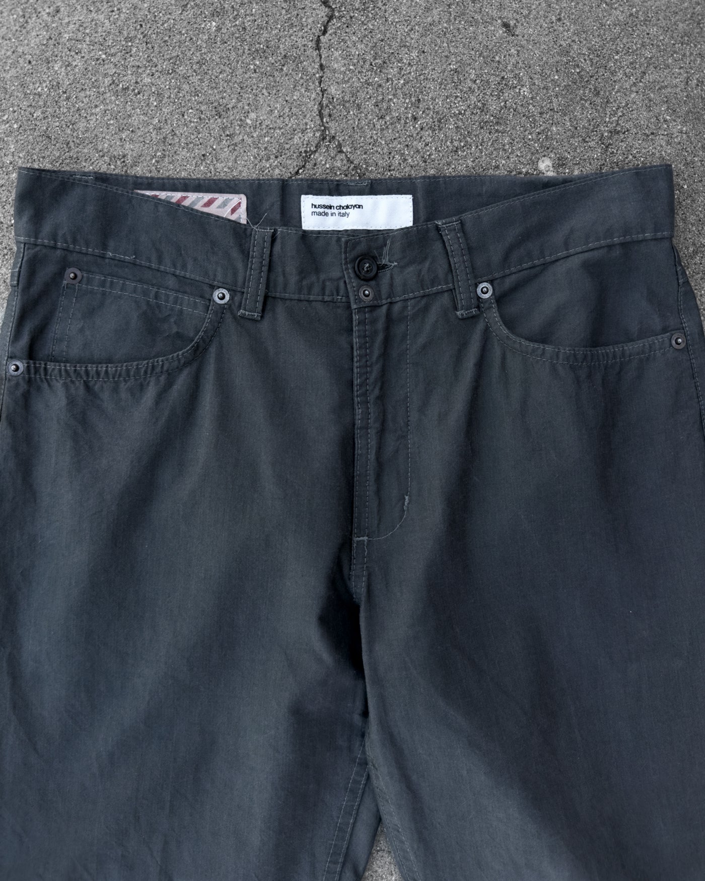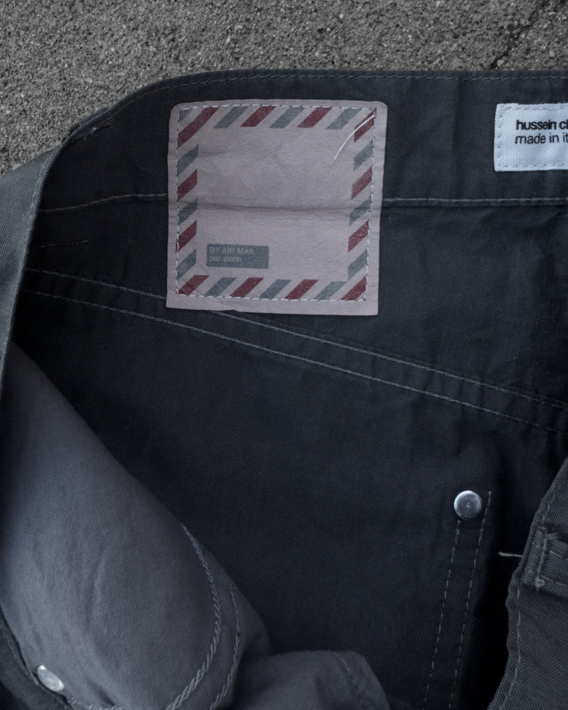 HUSSEIN CHALAYAN SS2003 'ABSENCE AND PRESENCE' GREY CANVAS JEANS