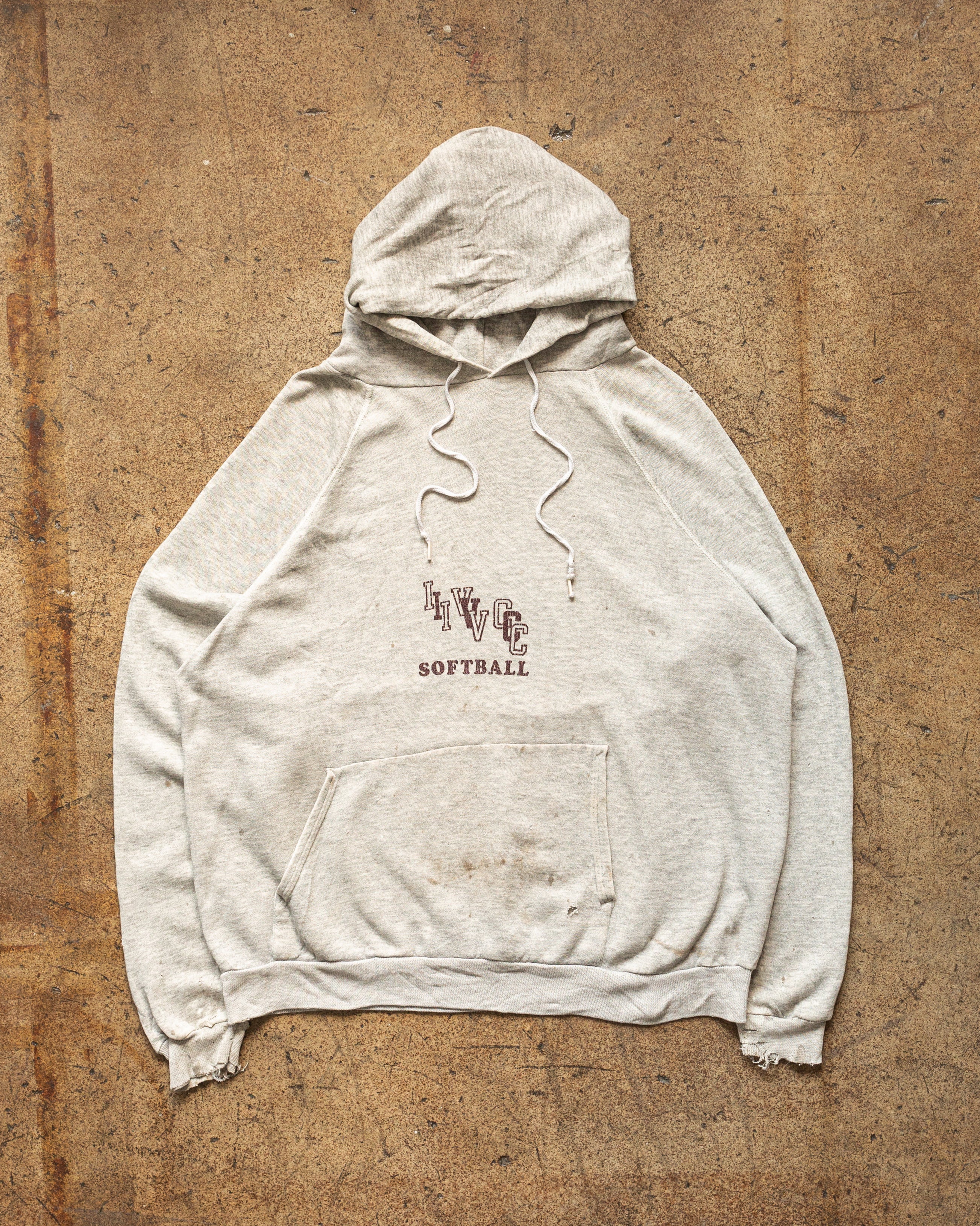 "IVC Softball" Raglan Hooded Distressed Sweatshirt - 1980s