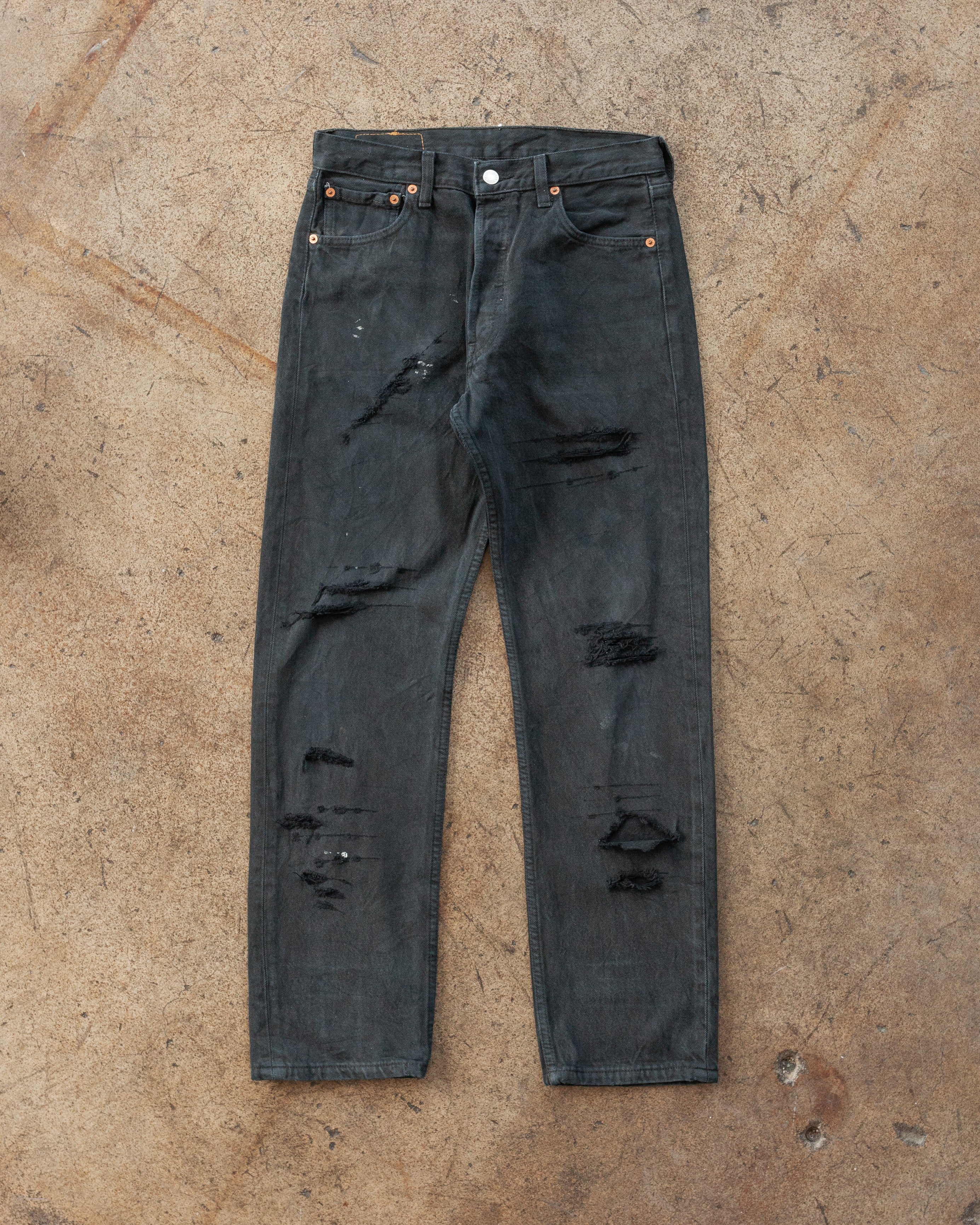 Levi's 501 Blue Black Distressed Jeans - 1990s