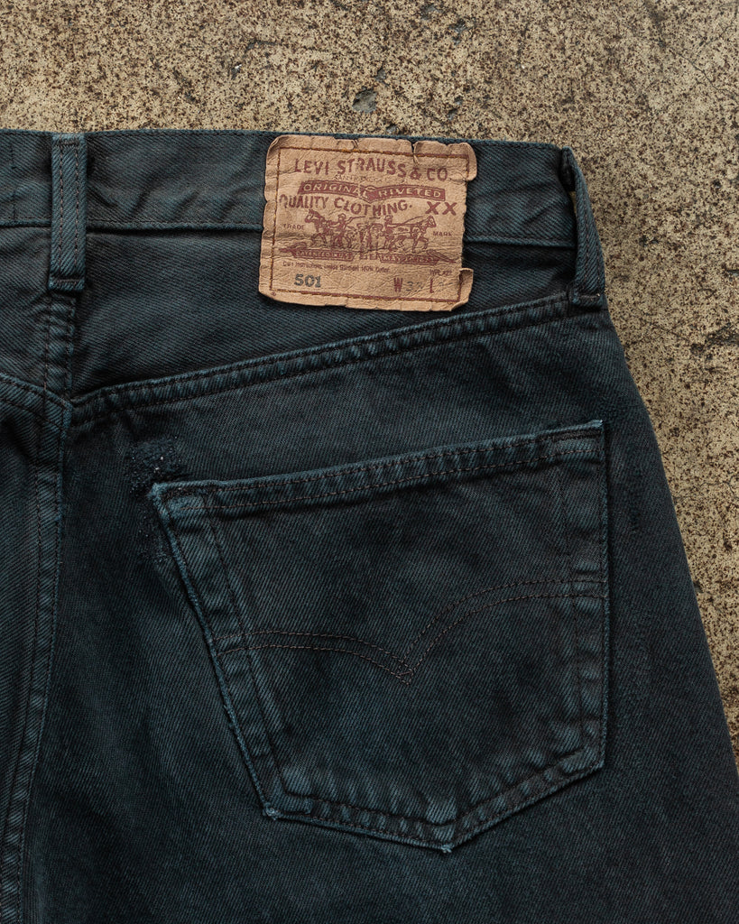 Levi's 501 Blue Black Repaired Jeans - 1990s