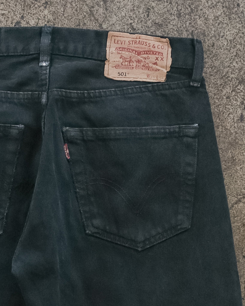 Levi's 501 Blue Black Repaired Jeans - 1990s