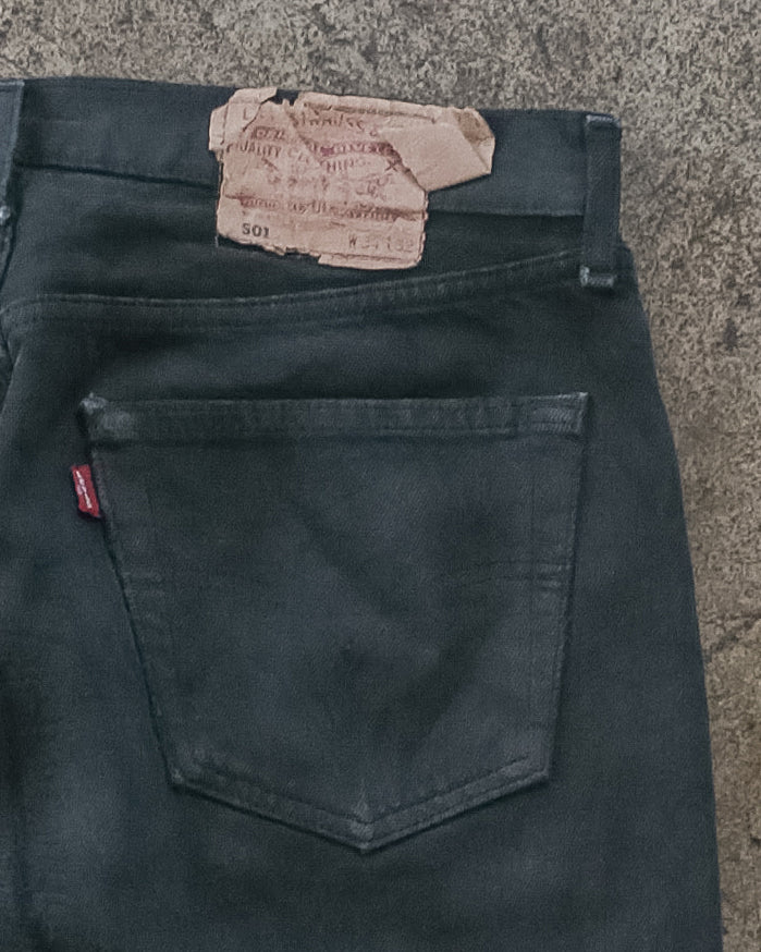 Levi's 501 Blue Black Repaired Jeans - 1990s