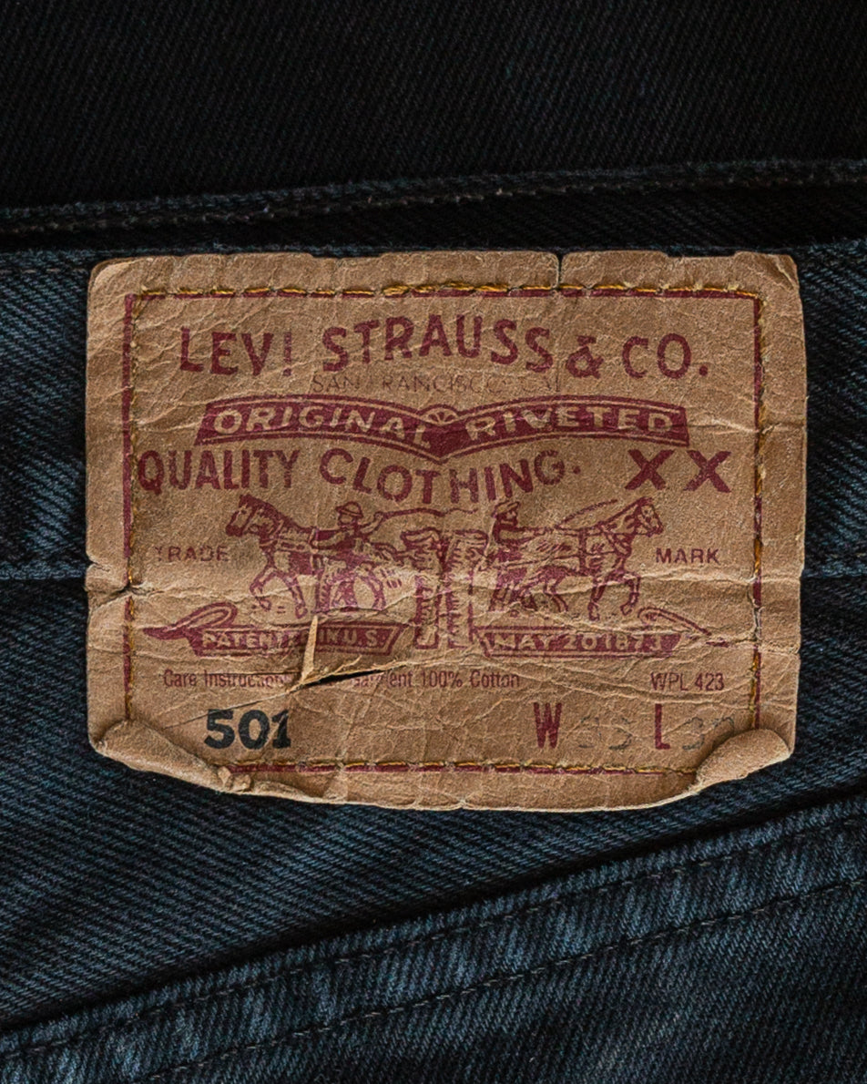 Levi's 501 Blue Black Repaired Jeans - 1990s