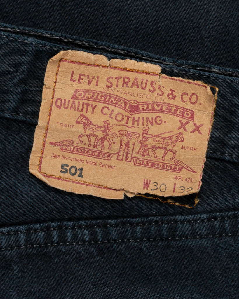 Levi's 501 Blue Black Repaired Jeans - 1990s