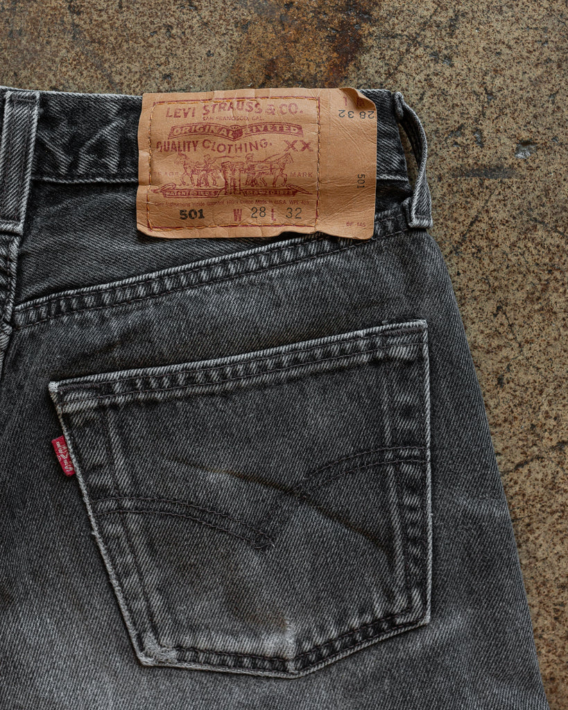 Levi's 501 Charcoal Grey Repaired Jeans - 1990s