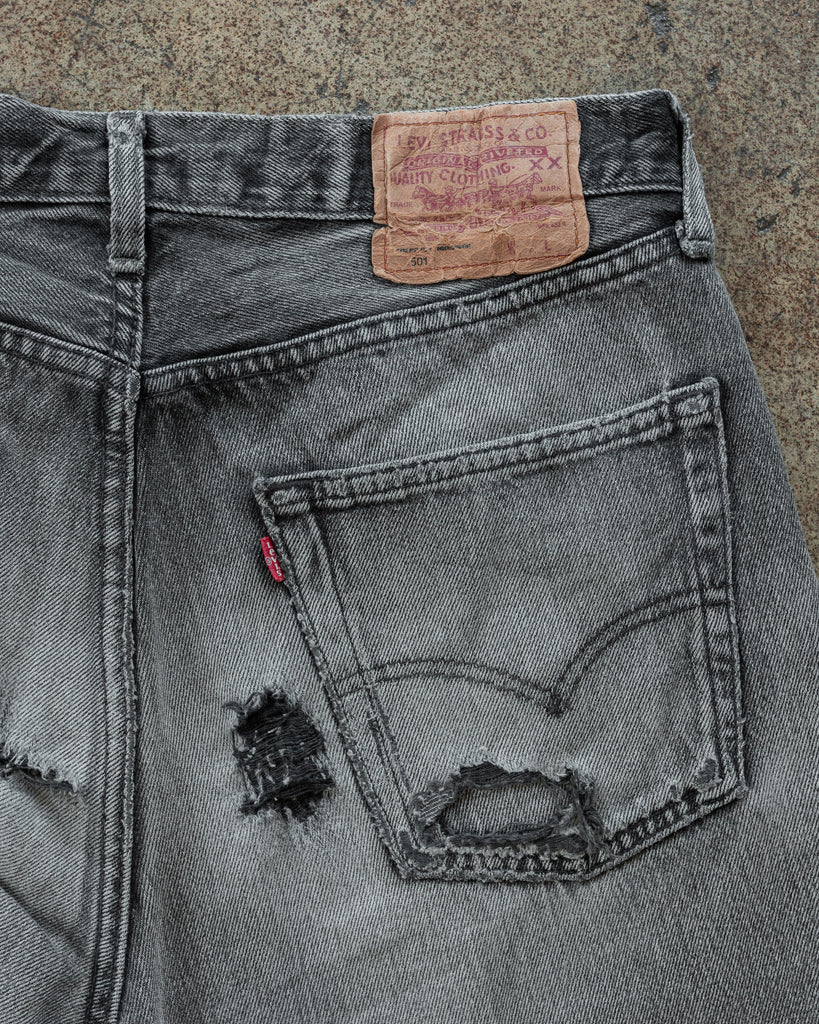 Levi's 501 Distressed Charcoal Jeans - 1990s