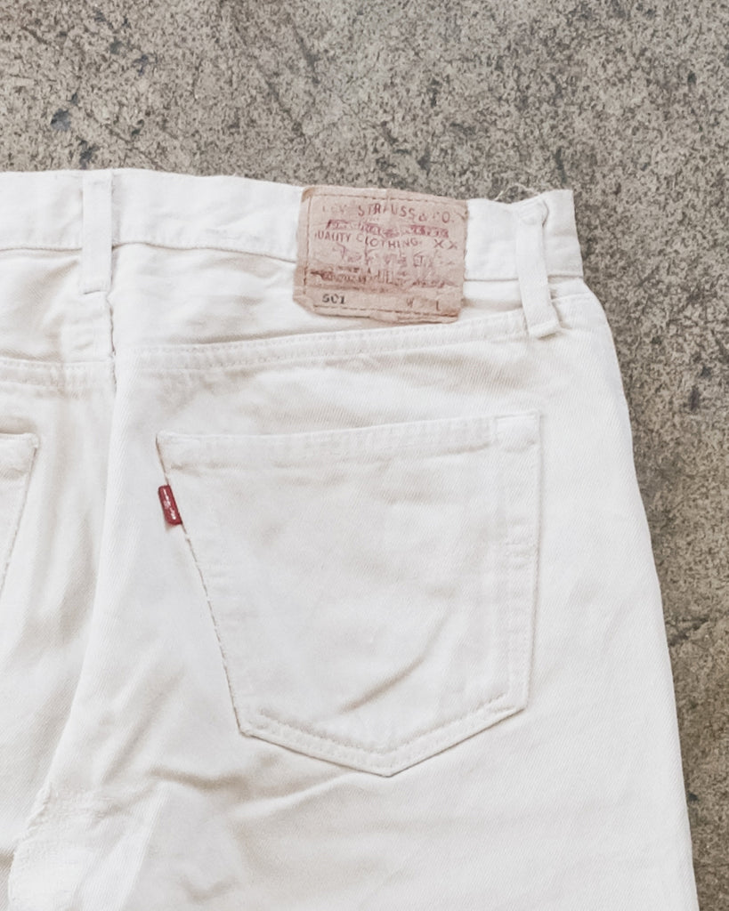 Levi's 501 Light Beige Repaired Jeans - 1990s